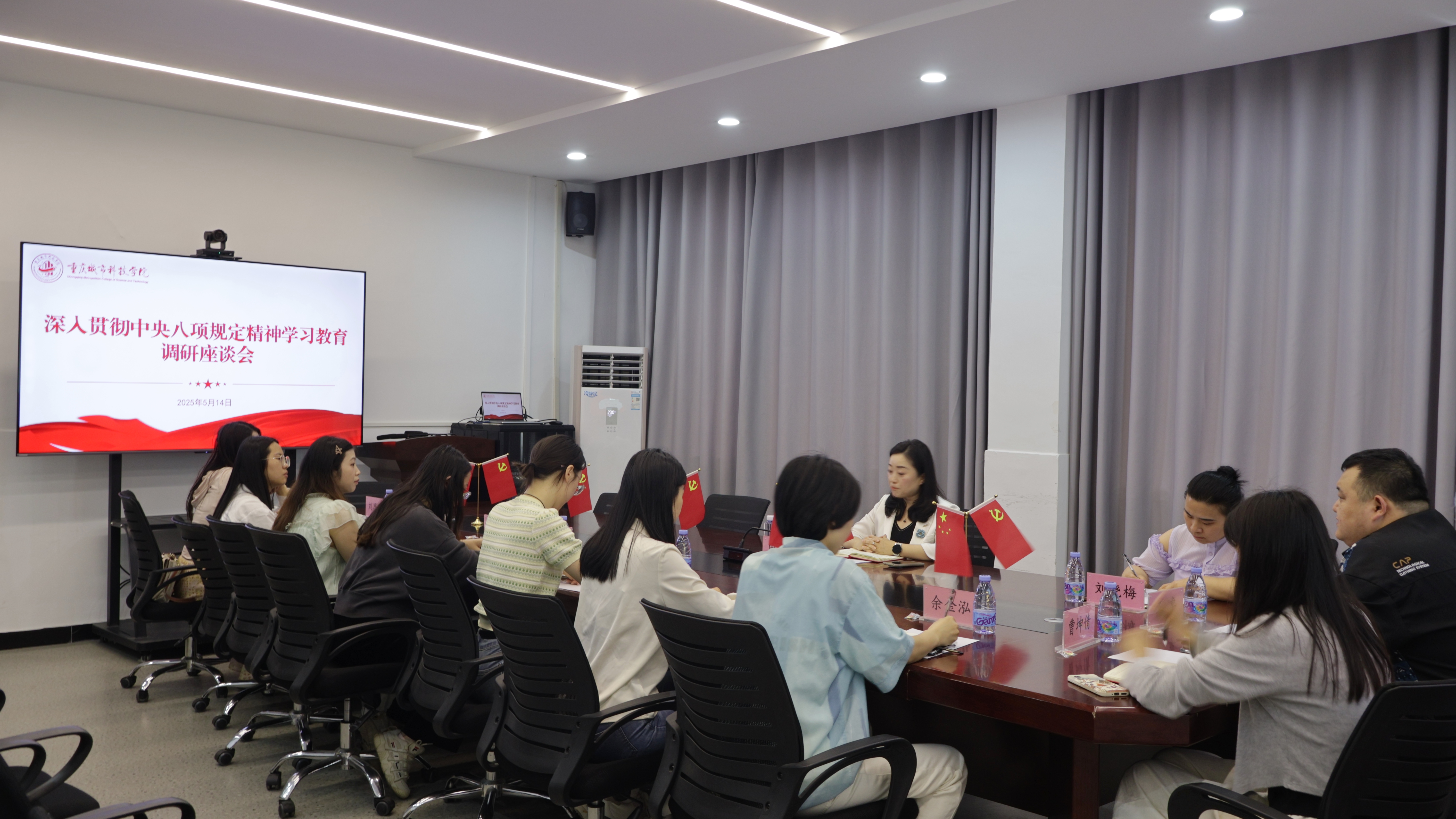 为进一步强化作风建设,凝聚高质量发展合力,5月14日下午,学校党委在永川校区和巴南校区同时召开深入贯彻中央八项规定精神学习教育调研座谈会。学校党委领导深入各基层党组织,认真听取了基层教师代表对党员、干部贯彻中央八项规定及其实施细则精神以及学校发展的意见建议。