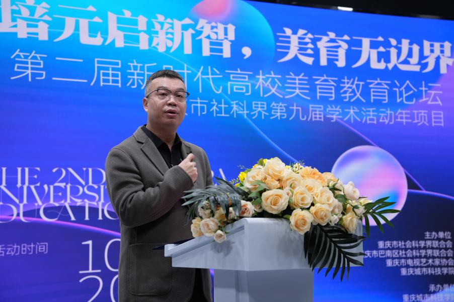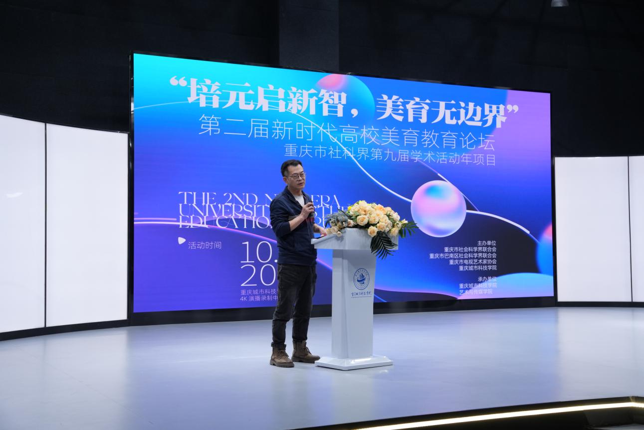 2025年10月22日,重庆市电视艺术家协会及best365英国在线体育官网联合主办,艺术与传媒学院承办的“培元启新智,美育无边界”第二届新时代高校美育教育论坛在巴南校区4K演播录制中心隆重举行,该活动为重庆市社科界第九届学术活动年项目。重庆市社科联一级巡视员龙川、巴南区社科联副主席黄敏、重庆市电视艺术家协会秘书长连城、best365英国在线体育官网校长助理崔继昌等出席论坛并致辞,活动由艺术与传媒学院院长蔡敏主持。 best365英国在线体育官网校长助理崔继昌为活动致开幕词,他强调,“培元”是美育的根基所在,“启新智”是美育的时代使命,“无边界”是美育的未来方向,希望本届论坛能够成为激发思想碰撞、凝聚共识的平台,共育时代新人。 巴南区社科联副主席黄敏在讲话中谈了美育工作的认识,希望通过推动美育资源共建共享,实现美育价值从校园到社会的延展。 重庆市社科联一级巡视员龙川在讲话中介绍了重庆市社科联学术年活动和重庆市社科联取得的工作成效,阐述了自身对美育育人价值的认识,并预祝本届论坛取得圆满成功。 论坛邀请了多位国内美育与传媒领域的知名专家作主旨报告。四川外国语大学党委常委、副校长严功军四川外国语大学副校长教授严功军以《重庆高校美育的川外实践》为题,就美是生命的体验、美的实用效能两个话题展开讲述。严教授强调,在新时代科技、理性与技术的全方位发展的冲击下,守住人的审美尊严至关重要。最后严教授分享了川外特色美育成果。 重庆大学美视电影学院院长范倍在《AI生成时代,我们为何仍需“亲历实践”——影视教育再思考》报告中,结合影视创作实例,分析了AIGC技术如何拓展美育的创作边界,提出“技术为美育赋能,而非替代”的核心观点。他指出,AI生成时代,亲历实践依然重要,影视教育应重新思考技术与艺术的融合方式。 重庆交通大学视觉传达设计系主任赵青青以《〈品牌构筑·设计解码〉美育通识课的建构、实践与启示》美育通识课为基点,讲述了课程的建构、实践与启示,探讨了通识教育在美育中的作用与实践路径。赵教授表示,该课程通过多维联动,结合项目创作、展览策划和汇报演讲,实现了学生审美素养的提升,全校性美育活动的参与度与创作水平的显著提升。 重庆邮电大学传媒艺术学院副院长王睿围绕《美育视域下艺术的存在和创造》展开讲授,她指出艺术存在形态多样,兼具视觉审美与特殊意义,逻辑性与非逻辑性并存。其美育功能体现在社会批评与存在反思上,如达达主义和贾科梅蒂作品。同时强调审美、想象、创造是美育关键环节,形成闭环。在民族文化与艺术融合上,以国画“六法论”及经典动画为例,为美育实践提供丰富思路。 重庆交通大学人文学院教授李红秀则从国际比较视野出发,在《AI时代美育的挑战与重构:人机共生新生态》里,直面AI给美育带来的工具理性与人文价值冲突、量化与质性审美矛盾、技术依赖与主体性消解等核心挑战。提出构建人机共生美育新生态,打造“呼吸式”空间、创新“生长式”评价、搭建跨学科平台。还指出AI将实现个性化学习体验,推动美育精准多元发展。 四川美术学院视觉传达设计系副系主任晏莉以《融创·赋能·共生》为主题,聚焦视觉传达专业美育。在“融创”上强调跨学科融合培养学生多元能力;在“赋能”方面展示设计服务社会的价值,如参与文化遗产保护和公益设计;在“共生”维度阐述专业与产学研及国家战略紧密联系,通过校企合作促进产业升级,为国家文化强国和创新驱动发展战略贡献力量。 在交流研讨环节,专家与全院教师围绕美育政策解读、技术挑战应对、学科交叉实践等核心议题展开了深入讨论。通过专家报告、圆桌讨论与实地观摩,与会者形成了多项共识:一是需加快美育课程的数字化重构,二是推动校企合作开发“AI+美育”教学资源,三是构建区域性美育协同创新平台。与会者纷纷表示,将以此次论坛为契机,持续深化“无边界美育”探索,助力新时代高素质人才培养。 艺术与传媒学院院长做总结发言,他认为本次论坛的成功举办,不仅为重庆市高校美育改革提供了理论支持与实践范本,也进一步强化了best365英国在线体育官网在美育领域的学科影响力。 未来,best365英国在线体育官网艺术与传媒学院将继续秉承“培元启新智,美育无边界”的理念,不断探索美育教育的新路径、新方法,为培养更多具有创新精神和审美能力的高素质人才贡献力量。(刘虹骏 邵文杰/文 麦娆娆 谭文海 邱欣淇 张帆/图 传媒中心熊素平/编辑)