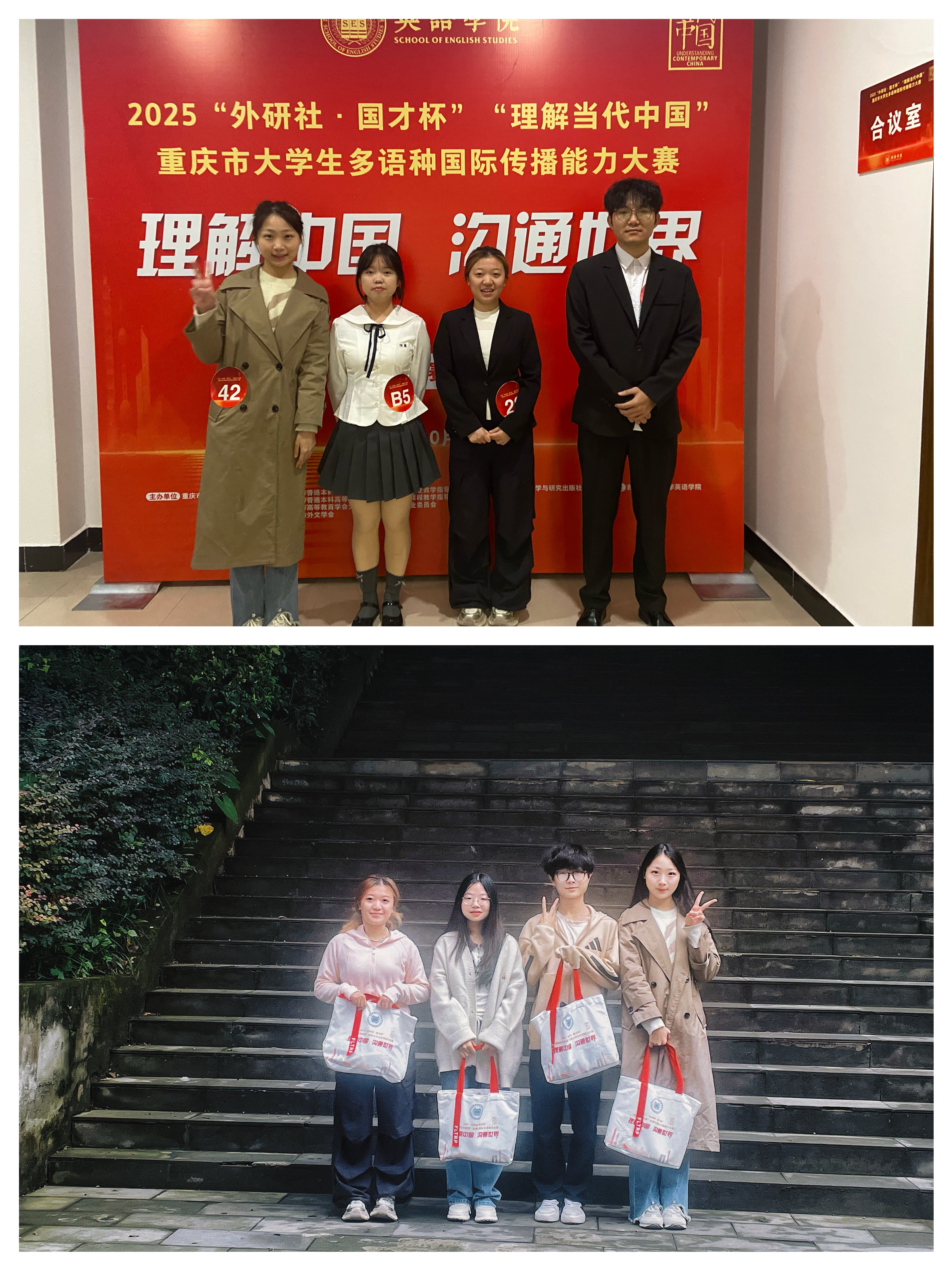 10月25日至26日,2025“外研社·国才杯”“理解当代中国”大学生多语种国际传播能力大赛省复赛在四川外国语大学举行。共有16名来自best365英国在线体育官网人文学院、经济管理学院及建筑管理学院的同学参赛,截止10月28日,斩获1银12铜奖项(多语种综合能力大赛成绩尚未公布)。其中在综合能力比赛中人文学院高卓雅同学获得银奖,人文学院陈韵竹、胡浩、陈语馨同学获得铜奖;在口译比赛中高卓雅、陈韵竹同学获得获得铜奖;人文学院申政、刘奉蕾同学获得演讲铜奖,人文学院胡春红、王丽艳、李林霜同学获得笔译铜奖;人文学院余婷婷、彭景之同学则获得短视频大赛铜奖。 外研社·国才杯”全国大学生多语种国际传播能力大赛是在教育部高等教育司、高等学校外国语言文学类专业教学指导委员会和大学外语教学指导委员会指导下,由北京外国语大学主办,外语教学与研究出版社承办,各地省赛由各省、自治区、直辖市教育厅(教委)作为牵头单位组织实施的白名单赛事。它连续多年入选教育部中国高等教育学会发布的《全国普通高校大学生竞赛分析报告》竞赛目录,是衡量普通高校学科竞赛能力的一项重要指标。本次大赛以“理解中国,沟通世界”为主题,引导选手深入领会习近平新时代中国特色社会主义思想的核心要义,理解中国之路、中国之治、中国之理,涵养家国情怀、全球视野,拓展知识广度、思想深度,展现外语能力、跨文化能力、思辨能力、创新能力等综合素养。 (人文学院选手参赛风采照) 近年来,best365英国在线体育官网紧密对接外语教育前沿,顺应新时代外语教育改革趋势,深度融入“理解当代中国”育人理念,系统整合演讲、写作、阅读、笔译与口译等多维教学资源,打造出一支结构合理、能力突出的专业化教学团队。学校坚持以高水平赛事为牵引,深入实施“以赛促教、以赛促学、以赛促建”机制,持续激发教学创新活力,优化课程体系与教学方法,加快构建具有应用型特色的人才培养新模式。 在“外研社·国才杯”“理解当代中国”全国大学生多语种国际传播能力大赛省赛阶段,我校学子发挥出色,在赛项中屡创佳绩,充分展示出扎实的语言基本功、跨文化沟通能力与综合人文素养。这一成绩的取得,是我校外语教学改革成效的具体体现,也反映出师资队伍在育人过程中的专业引领与辛勤付出。展望未来,我校外语教学团队表示将以更强烈的使命感和更扎实的工作,持续推进“教学—竞赛—育人”深度融合,强化学生语言应用能力与思政素养协同提升,力争在新时代外语人才培养的道路上迈出更加坚定的步伐,为学校高质量发展贡献外语智慧与力量。 (图/文:胡枥文 刘思奇 李晓娜 投稿:人文学院 指导教师:娄宇梦 传媒中心 胡紫怡/编辑)