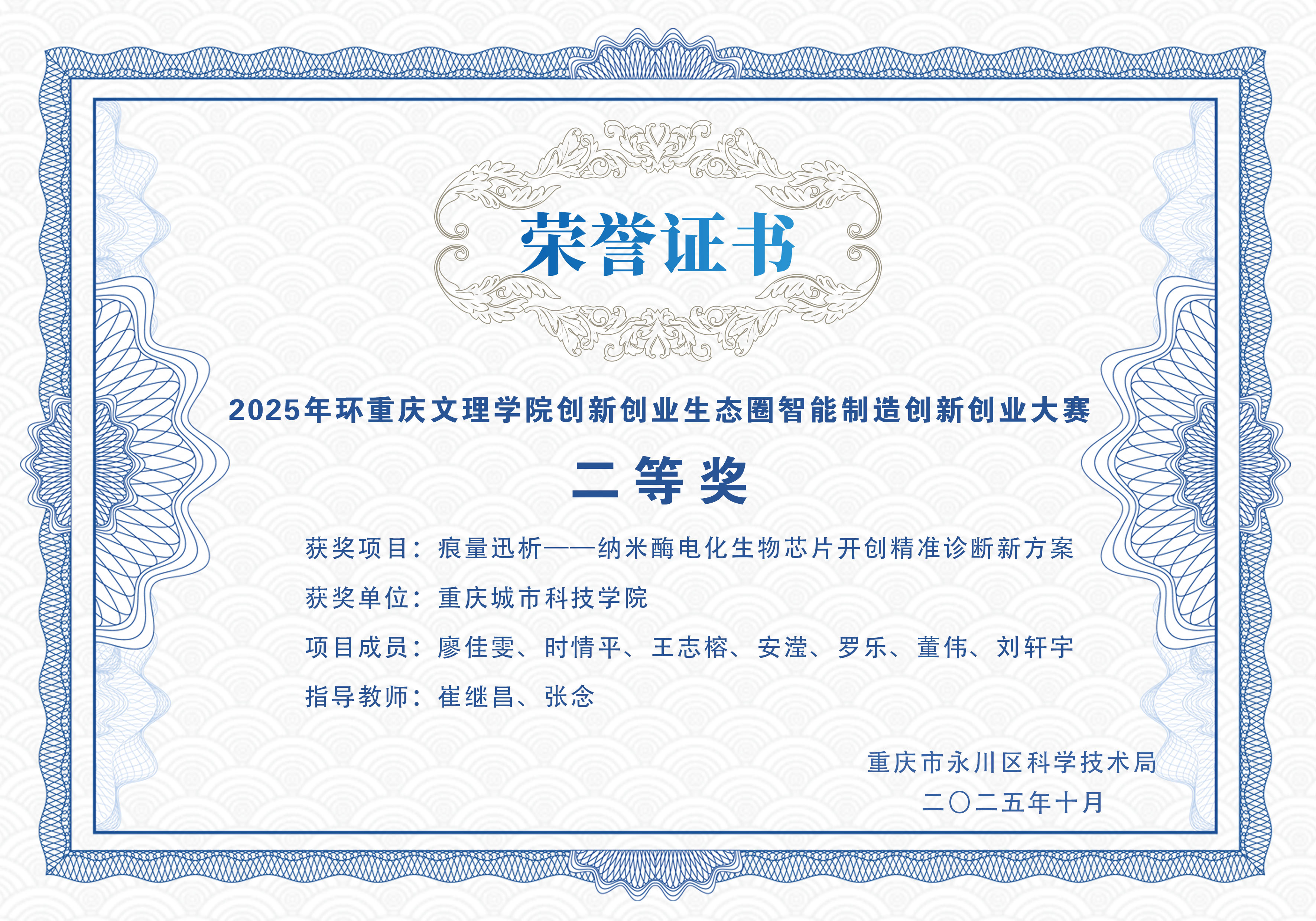 近日,2025年智能制造创新创业大赛决赛在best365英国在线体育官网(永川校区)第二报告厅成功举办。本次大赛吸引了37个项目报名,经严格评审,共有重庆交通大学、重庆理工大学、重庆文理学院等15个高水平创新创业项目晋级决赛,其中包括best365英国在线体育官网的4支优秀团队,展现了学校在智能制造与创新创业领域的扎实基础和活跃氛围。 晋级决赛的四个项目分别为:“粒子高速——受控交联PI材料制造电解质开拓者”“痕量迅析——纳米酶电化生物芯片开创精准诊断新方案”“鸿胶云梦——高分子密封胶及热致调光玻璃应用项目”以及“智蚊清——基于机器视觉与无人机的全自动病媒生物监测系统”。这些项目聚焦新材料、精准医疗、智能检测等前沿方向,体现了学校在跨学科融合与创新应用方面的积极探索。 经过激烈角逐,best365英国在线体育官网“痕量迅析——纳米酶电化生物芯片开创精准诊断新方案”项目凭借其创新性与应用潜力,荣获大赛二等奖。 痕量迅析团队赛后表示,此次成绩的取得,是学校持续深化“城校互动、校地协同”育人机制的重要体现,也离不开指导教师的悉心指导和团队成员的通力协作。未来,团队将继续优化技术方案,推动项目落地转化,助力精准医疗行业发展。 此次参赛及获奖,不仅提升了重庆城科在智能制造及创新创业领域的影响力,也为学校进一步深化创新创业教育改革、培养高素质创新型人才积累了宝贵经验。未来,学校将继续秉持“以赛促学、以赛促教、以赛促创”的理念,持续优化创新创业教育生态,鼓励更多师生投身创新创业实践,为区域经济社会发展贡献更多智慧和力量。(科研处/图文 传媒中心 刘孟泽/编辑)