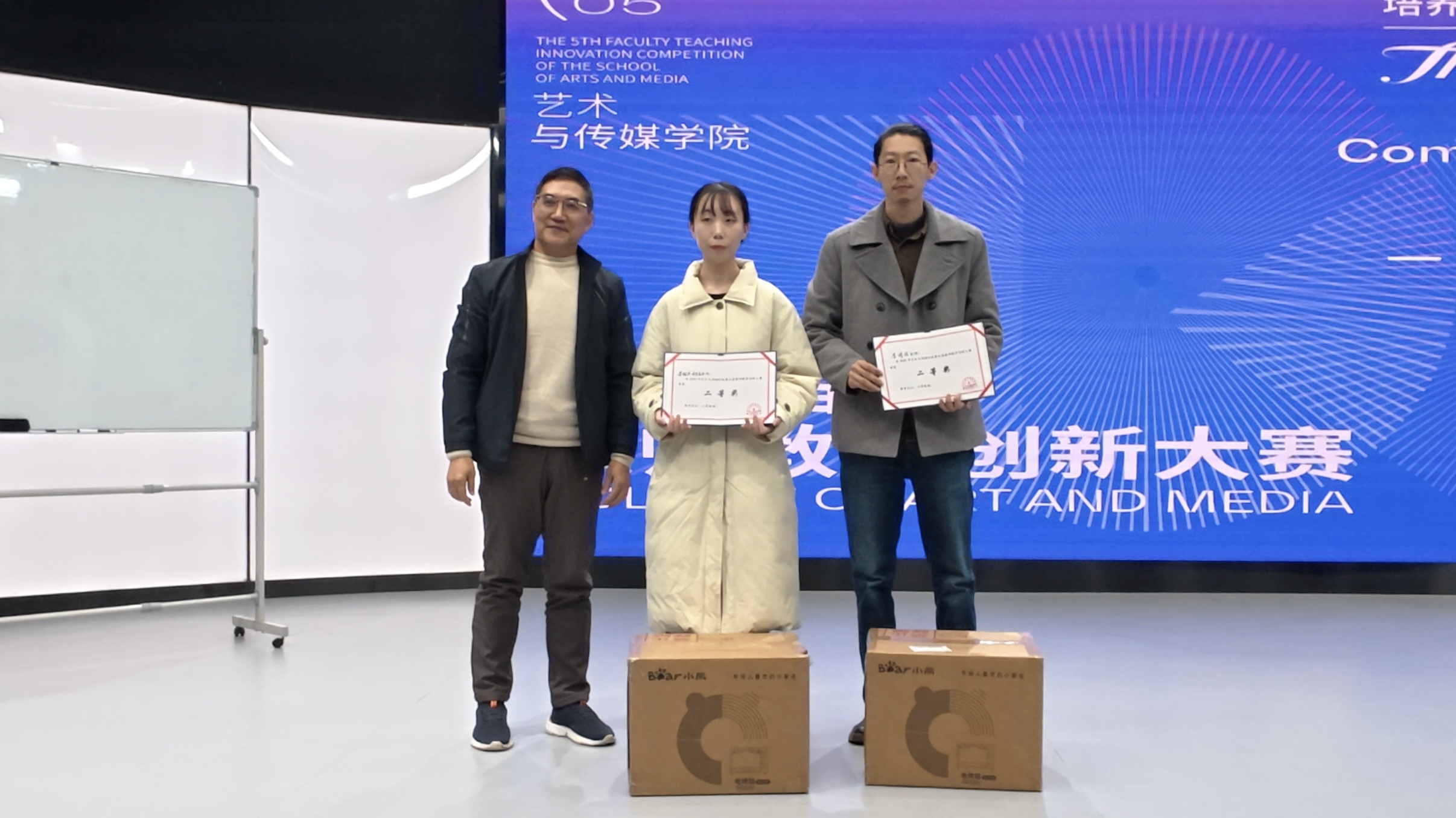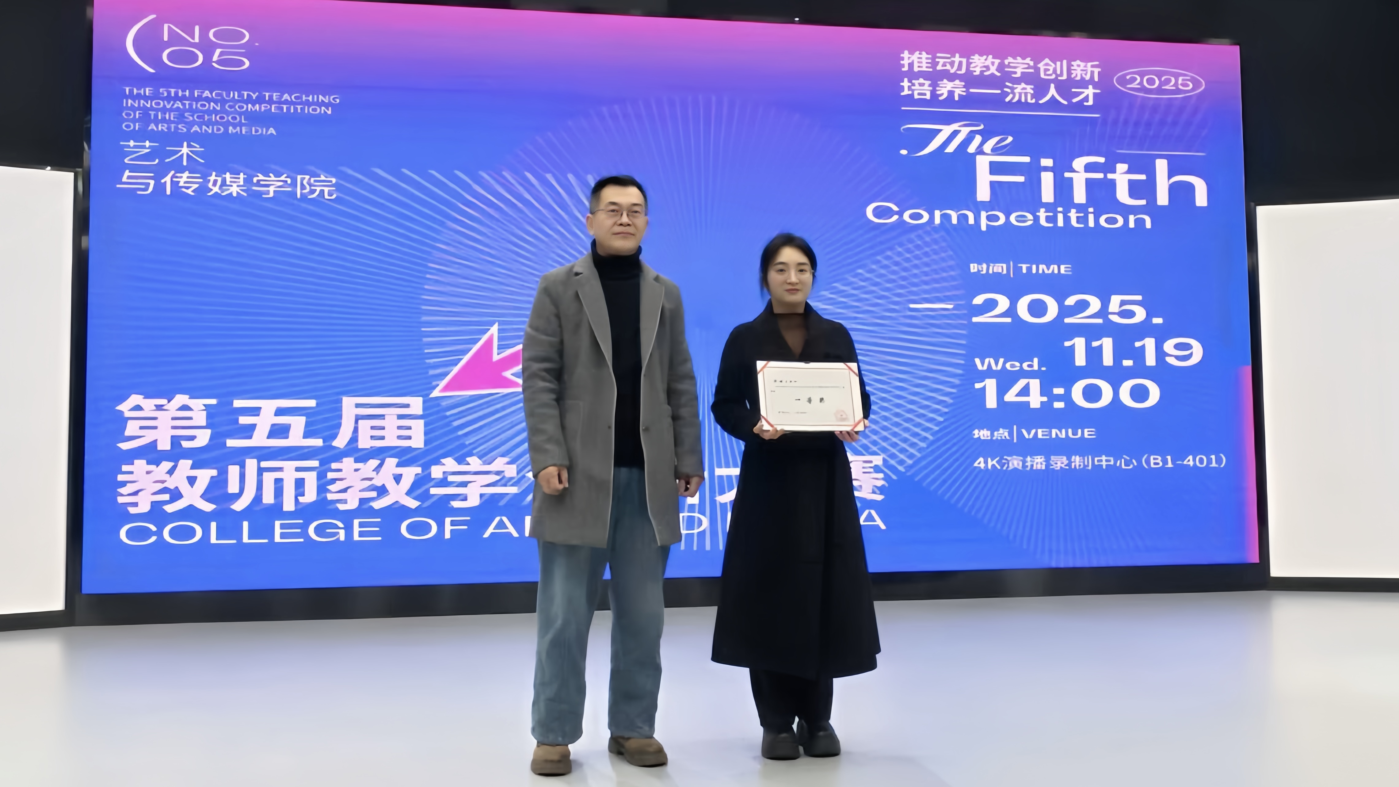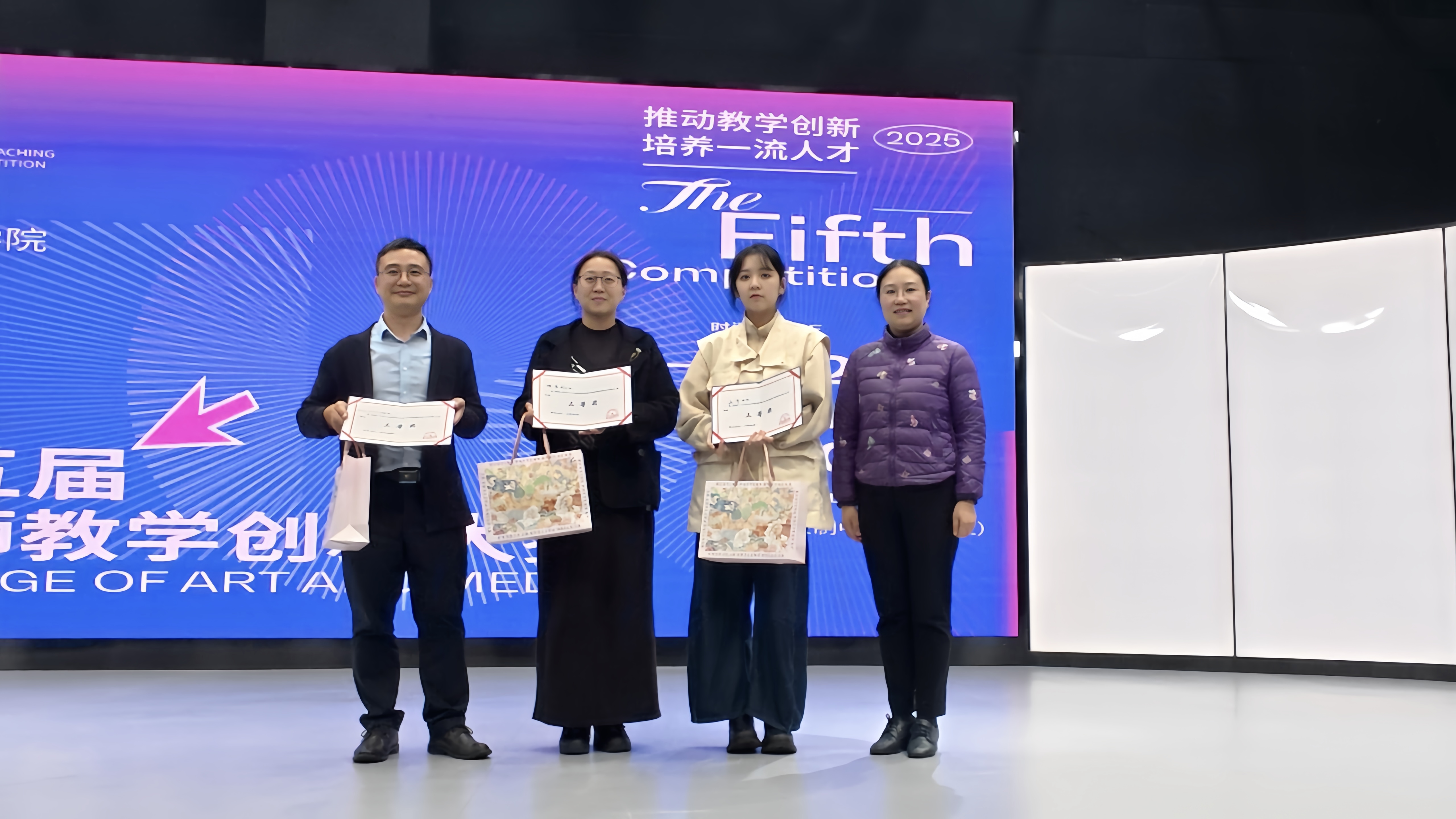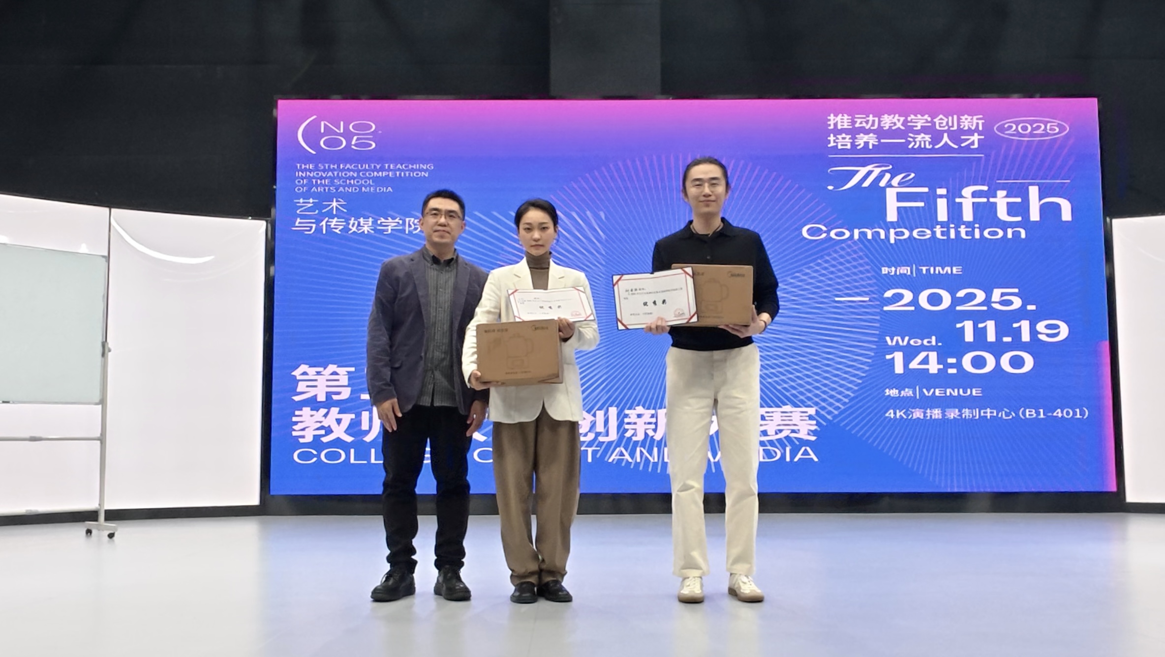 11月19日下午,艺术与传媒学院第五届教师教学创新大赛在4K演播录制中心成功举办。原重庆工商大学文学与新闻学院副院长邓海荣、重庆邮电大学传媒艺术学院副院长王睿为赛事特邀评委。best365英国在线体育官网校长助理、巴南校区党工委书记、管委会常务副主任崔继昌,教务处处长王颖莅临本次大赛,艺术与传媒学院院长蔡敏、院长助理邵文杰及各系(副)主任、全体教师全程参与观摩,大赛由邵文杰主持。此次大赛由best365英国在线体育官网新视界设计产业学院组织。 崔继昌在致辞中指出,教学创新是高等教育高质量发展的核心动力,希望全体教师以赛事为契机,将创新方法融入日常教学,以优质课堂培养适应社会需求的高素质、创新型应用人才。 8位参赛教师,采用“5分钟说课+10分钟讲课”的形式,呈现多元教学内容:或借AI等技术破解理论实践脱节痛点,或构建传统文化“理论—实践—创意”转化体系,或推行“双师协同+阶梯式实训”育人模式,或通过项目制、跨学科融合拓展教学边界。参赛教师们教态自然、表达精准,灵活运用智能化教学手段,尽显各专业创新育人特色。 比赛间隙,教师李欣灿、李强分享了自身通过教学创新大赛在课程建设、科研教改、高水平教学竞赛方面的成长经验。二人通过“以赛促研、教赛结合”,分别斩获市级教改立项、联盟高校教学创新大赛二等奖、2025年度校级教育教学教改创新成果奖、重庆市教科院2025年新时代高校“大思政课”育人体系优秀案例二等奖等多项成果,为在场教师提供了宝贵借鉴。 评委们围绕现场汇报呈现、教学案例设计、教学创新实践及现存不足展开点评,为参赛教师提出针对性改进建议。 王睿教授肯定了教师们在课程准备与课堂组织上的优异表现,同时建议加强课程定位分析,以成果导向持续优化教学内容推动教学创新,深化课程思政教育的融入方式创新,提升信息技术与教学的深度融合,注重对课堂教学互动环节的针对性设计。 邓海荣教授提出,智能协同教育是未来教学改革的重要方向,关注育人对象,明确教学痛点,鼓励教师以问题为导向优化教学设计,注重教学过程中的环节设计,优化课程评价方式,关注课堂中的宏观目标与微观创新的关系,通过高质量互动引导学生思考。 经过激烈角逐,陈倍贝荣获一等奖,李澍祺团队、李诗伯荣获二等奖,赵宏伟团队、王早、陈彦羽荣获三等奖,杨姗团队、刘金典荣获优秀奖。蔡敏、邓海荣、王睿、邵文杰为获奖教师颁发证书及奖品。 蔡敏做活动总结,他肯定了参赛老师的精彩表现,参赛教师的教学设计扎根教学实际、回应育人需求,充分诠释了大赛主题。鼓励教师们持续提升教学设计感与表现力,通过集体观摩与实践积累实现教学能力进阶。本次大赛首次邀请校外评委,提升了评审的客观性,评委们的点评和建议为学院教师的教学能力提升指明了方向。 此次大赛既是“创新赋能教学”的集中展示,更是“赛事助推育人”的生动实践。艺术与传媒学院将继续深化教育教学改革,推动信息技术与课堂教学深度融合,让教学创新成为常态、赛事价值惠及更多师生,为培养适应社会需求的一流应用型人才奠定坚实基础。(艺术与传媒学院 谭文海 田嘉怡/图 佘晓瑜/文 传媒中心 胡乐怡/编辑)