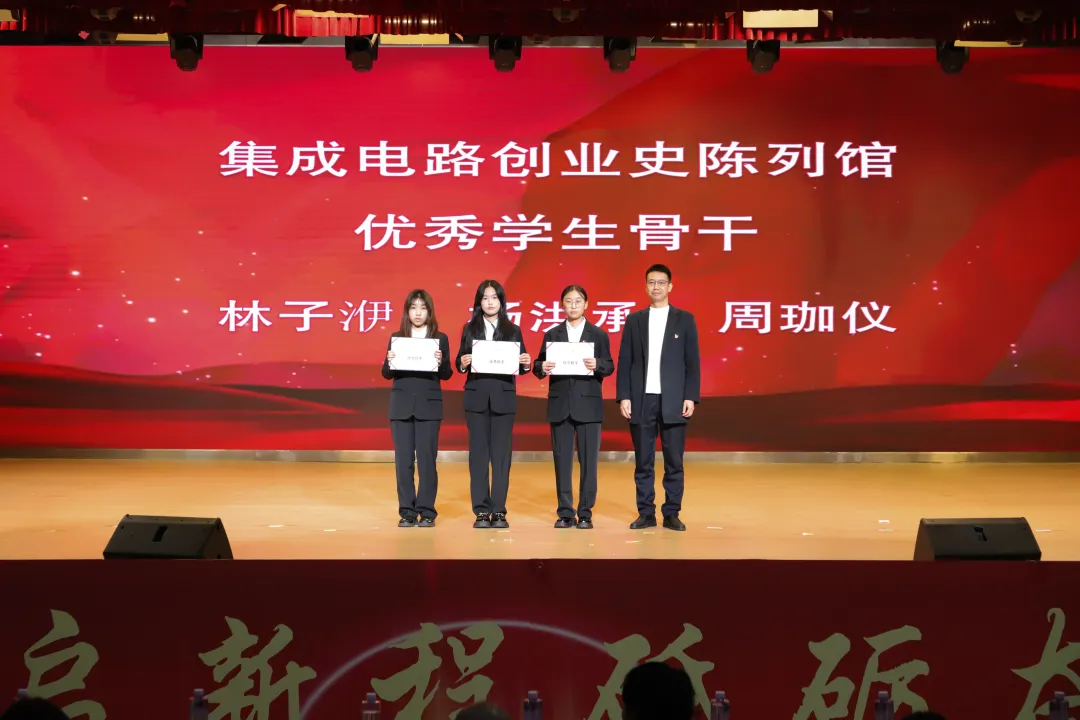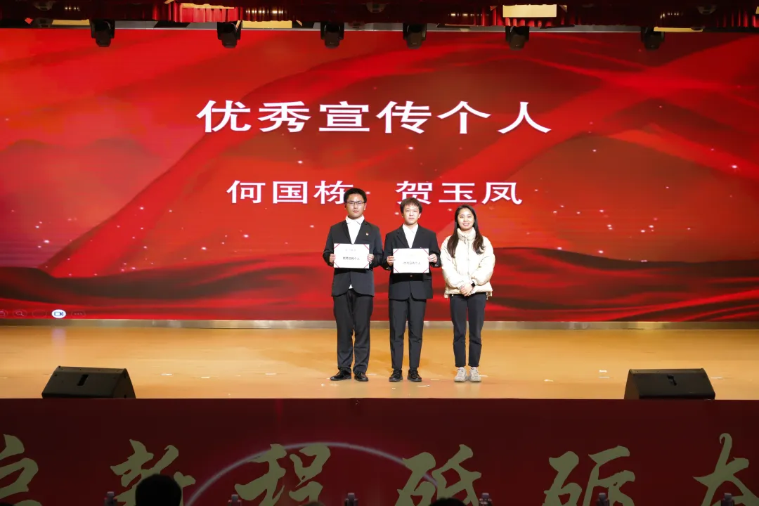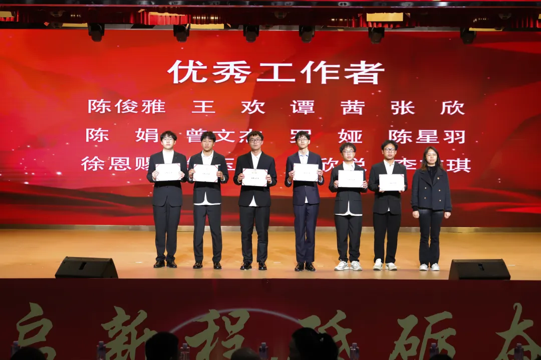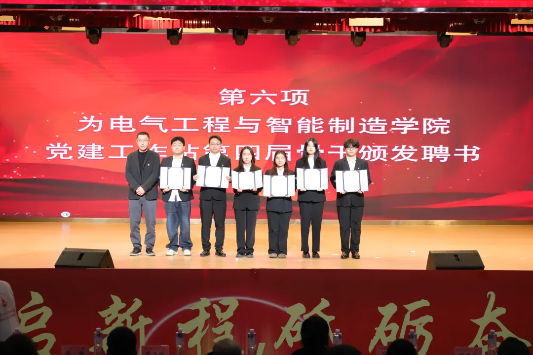 为深入贯彻落实第二十八次全国高校党的建设工作会议精神,深刻认识高校党建工作的新使命新挑战新要求,明确新时代高质量党建对学生工作的引领作用,实现高质量党建引领学生工作高质量发展。2025年11月20日晚,电气工程与智能制造学院于第一学术报告厅开展2025年电气工程与智能制造学院高质量党建促学院学生工作高质量发展工作总结会。电气工程与智能制造学院院长陈进、党总支副书记李宇、副院长张玉林、大学生党建工作中心指导老师马煦玥、学院党总支组织委员徐源、党总支纪检委员陈晓庆、党总支青年委员陈慧、学生第一党支部书记张雪雪、学生第三党支部书记牟凤利及党建工作站指导老师出席会议。电气工程与智能制造学院学生代表以及党建工作站、集成电路创业史陈列馆全体人员参会,本次大会由尹代松,李思静同学主持。 (图1 会议全景) (图2 主持人) 第一篇章 初心铸魂忆征程,薪火赓续显担当 (图3 朗诵表演) 《百年正青春》朗诵表演结束后,主持人尹代松致开场词并介绍领导及嘉宾,接着护旗手迈着铿锵有力的步伐走进舞台中央,参会人员全体起立,奏唱国歌。 (图4-5 全体成员奏唱国歌) 会议伊始,大学生党建工作中心指导老师马煦玥老师上台为本次大会致辞。首先,她回顾电气工程与智能制造学院以党建工作站、集成电路陈列馆为载体,借“三线精神”引领学生工作的成果。接着,介绍工作站夯实党务、开展志愿服务活动、打造“党建促学风”品牌,以及陈列馆在传承红色文化、助力思政建设的作用。最后,她号召师生奋进,助力学生工作发展、培育青年人才,并预祝大会成功。 (图6 马煦玥老师致辞) 紧接着,徐源老师和张院强老师为电气工程与智能制造学院党建工作站第四届骨干及集成电路创业史陈列馆第七届骨干颁发聘书。 (图7-8 颁发聘书) 承前启后,再谱新篇。集成电路创业史陈列馆第七届骨干代表杨洪承发言。首先,他代表陈列馆及学院党建工作站向长期关心支持相关工作的领导、老师和同学表达感谢;接着,他回顾了过去一年陈列馆作为市区两级爱国主义教育基地,在红色文化传播、科研精神传承及情景剧《“芯”征程》展演等方面的成果,同时介绍了学院党建工作站在党务工作、特色品牌活动等方面的成效;最后,他寄语新一届骨干及干事,希望大家接续奋斗根基、秉持进取之心,以坚定信念与务实作风创造新业绩,为事业发展注入新活力。 (图9 学生骨干杨洪承发言) 初心如磐,使命如炬。徐源老师宣读《2024-2025学年高质量党建促学院学生工作高质量发展表彰文件》。随后,陈进院长、张玉林副院长等多位院领导及老师,分别为“优秀部门”“陈列馆优秀骨干”等7类奖项的获得者颁奖,各获奖代表上台领奖并合影,大会氛围庄重热烈。 (图10 徐源老师宣读表彰文件) (图11-17 颁奖仪式) 接力新起点,奋斗正当时。由学生们带来情景剧表演《致青春》,它告诉我们,共产党员的青春,永远与信仰同行,与奋斗共进。这场演出,为此次换届大会烙下了深刻的青春印记,也激励着新老两代党员,在各自的赛道上,共同跑好历史的接力棒。 (图18-19 情景剧表演) 第二篇章 使命聚力启新程,青春筑梦向未来 情景剧《致青春》的精彩演绎落下帷幕,会议随即进入第二篇章。盛一凡老师上台宣读电气工程与智能制造学院第五届党建工作站及集成电路创业史陈列馆第八届骨干名单,正式揭开换届新篇章。随后,电气工程与智能制造学院党建工作站及集成电路创业史陈列馆换届交接仪式顺利进行。 (图20 盛一凡老师宣读骨干名单) (图21 换届交接仪式) 青春寄语,展望未来。第五届党建工作站站长何磊发言,从理论传播、创新实践、组织建设、打造特色品牌四个方面具体讲述了党建工作站未来发展目标,并表示将以初心为舵、以实干为帆,在创新中求突破,在奋进中谋发展。紧接着,全体观看学长学姐的寄语视频,既有经验传承也有殷切期许,让在场同学备受鼓舞。 (图22 党建工作站站长何磊发言) 殷切嘱托,寄予厚望。会议尾声,李宇副书记做总结讲话。她首先代表电气工程与智能制造学院党总支,向受到表彰的先进组织与个人致以热烈祝贺,对电气工程与智能制造学院全体师生致以崇高敬意与感谢之情。回顾了过去党建工作站和陈列馆的工作成果,从“把稳思想之舵,夯实理论基础”“传承红色使命,坚守初心立场”“创新实践锻炼,彰显使命担当”“强化组织凝聚力”“做好梯队建设,传承红色薪火”五方面对新一届学生骨干表达期望。李宇副书记强调要心怀梦想,脚踏实地,勇往直前,不断提升自我素养让青春在不懈奋斗中绽放绚丽之花。 (图23 李宇副书记作总结讲话) 党建引领,聚力前行。本次换届大会既是对电气工程与智能制造学院党建工作站及集成电路创业史陈列馆过往一年工作的全面总结与成果表彰,更是凝聚新力量、绘画新蓝图的动员大会。愿新一届骨干与干事们牢记使命、勇担重任,以昂扬姿态、坚定信念投身学院工作,共同推动学院各项事业高质量发展,书写电气工程与智能制造学院建设的崭新篇章! (图24 合影留念) (马冰冰/文 高雪芹/文 罗裕/图 熊程亿/图 传媒中心 易雪/编辑)