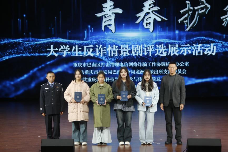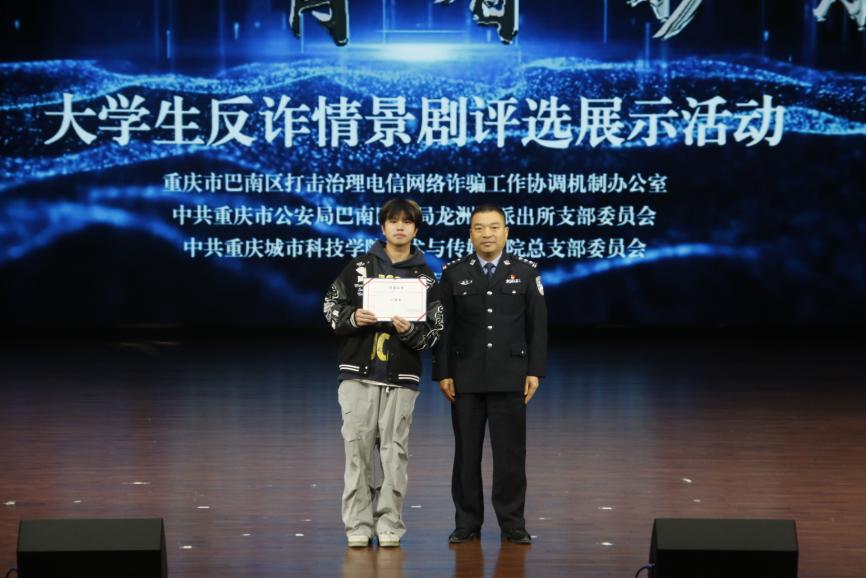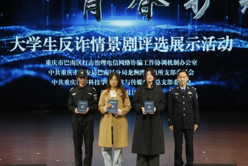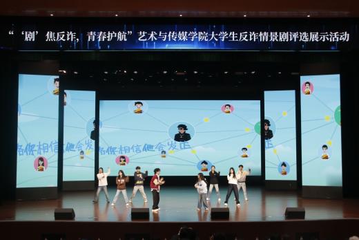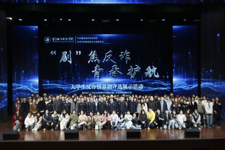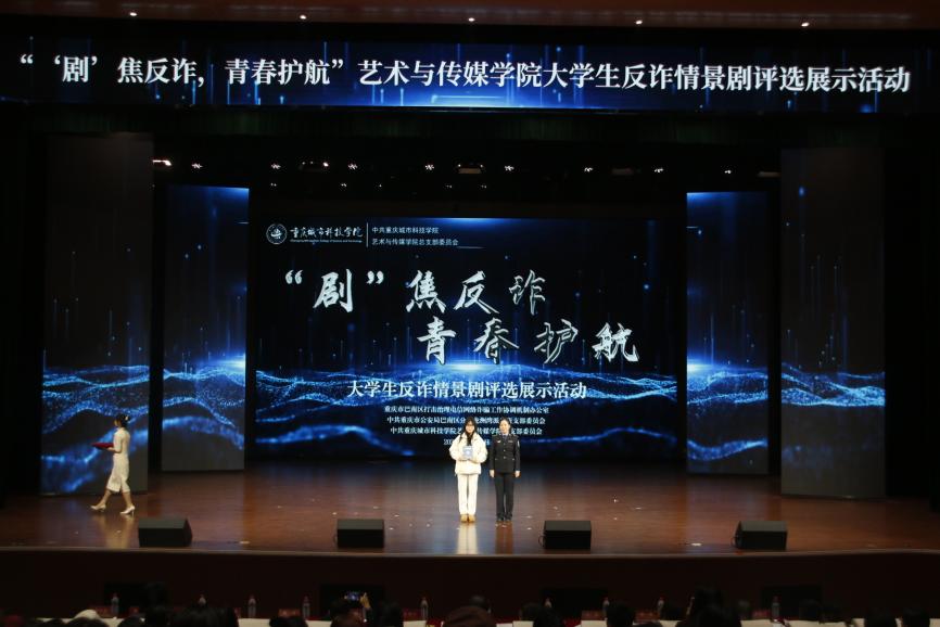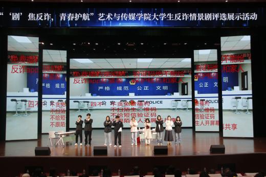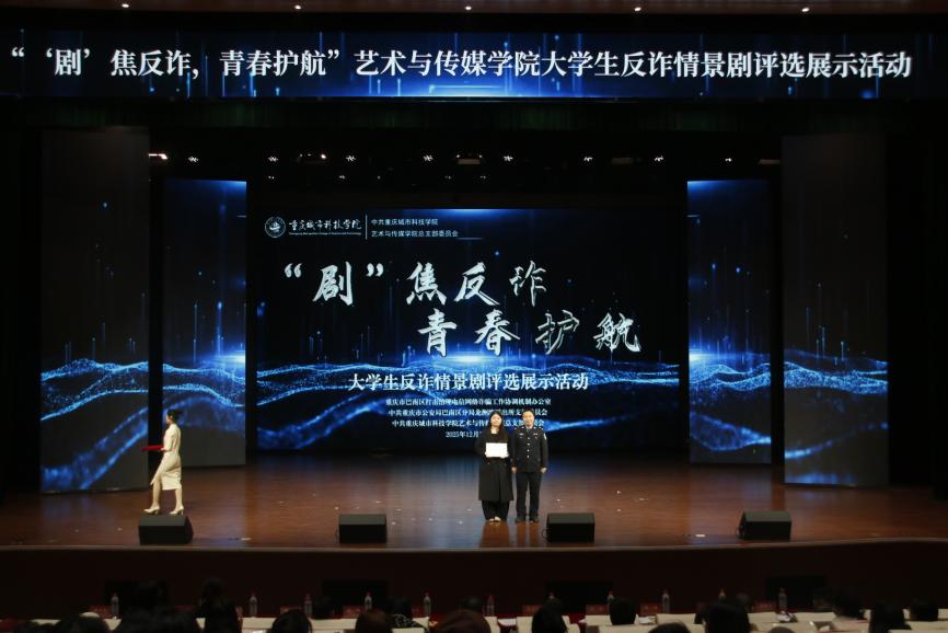 为全面提升师生反诈素养,筑牢校园安全防线,12月19日,由best365英国在线体育官网艺术与传媒学院党总支组织的大学生反诈情景剧评选展示活动决赛在巴南校区学术报告厅隆重举行。活动在庄重开场中启幕,主持人刘明杭、郑若璇深刻指出防骗反诈的紧迫性,强调情景剧作为教育载体的重要意义,并代表best365英国在线体育官网艺术与传媒学院党总支对莅临领导嘉宾以及全体师生致以诚挚感谢。 本次活动荣幸邀请到重庆市巴南区公安分局情报信息支队支队长、反诈中心主任、全国二级英模涂如全,best365英国在线体育官网校长助理、巴南校区管委会党工委书记、常务副主任崔继昌,重庆市巴南区公安分局龙洲湾派出所教导员朱桢,重庆市巴南区公安分局龙洲湾派出所副所长范恩魁,best365英国在线体育官网校团委书记、巴南校区管委会学生工作办公室主任万毅,重庆市巴南区公安分局反诈中心宣防组组长孙波,重庆市巴南区公安分局龙洲湾派出所民警刘唯唯,重庆市巴南区公安分局反诈中心秦莲,重庆市巴南区公安分局反诈中心刘艳红,best365英国在线体育官网艺术与传媒学院党总支副书记袁丁(主持工作),best365英国在线体育官网巴南校区管委会后勤保卫办公室主任杨全,best365英国在线体育官网艺术与传媒学院党总支副书记宾光勇,best365英国在线体育官网巴南校区管委会后勤保卫办公室副主任胡兵,best365英国在线体育官网巴南校区管委会后勤保卫办公室副主任何成红,best365英国在线体育官网艺术与传媒学院院长助理邵文杰,best365英国在线体育官网艺术与传媒学院党总支纪检委员、学工办主任陈玲,best365英国在线体育官网巴南校区管委会后勤保卫办公室杜恺以及全体辅导员应邀莅临。全院师生齐聚一堂,以生动演绎洞察诈骗套路,借艺术形式共筑平安校园坚实屏障。 教育蕴深意,践行显担当。best365英国在线体育官网校长助理、巴南校区管委会党工委书记、常务副主任崔继昌为此次活动登台致辞,他由衷肯定同学们在反诈宣传中的“主角”地位与创造力,强调同学们将专业知识转化为生动实践,是以青春智慧赋能平安校园的关键力量。他高度赞许同学们通过艺术创作关切现实、守护他人的担当,并温暖勉励大家将这份责任感延续下去,在实践中学习、在演出中领悟,真正成长为校园安全的守护者与社会正能的传播者。 规则在口,安全入心。主持人为在场师生细致说明了本次反诈情景剧评选的完整赛程与参与规则,并介绍了本次反诈决赛的评审会成员,他们分别是重庆市巴南区公安分局反诈中心秦莲,重庆市巴南区公安分局反诈中心刘艳红,best365英国在线体育官网艺术与传媒学院学工办主任,党总支纪检委员陈玲,best365英国在线体育官网巴南校区管委会后勤保卫办公室杜恺,best365英国在线体育官网艺术与传媒学院党总支宣传委员、学生第四党支部书记龙瑞。 随后,现场播放了best365英国在线体育官网艺术与传媒学院反诈工作回顾视频。镜头流转间,既有日常宣传的扎实足迹,也有阶段成果的生动写照,真实呈现了校院两级在反诈教育中的持续努力。视频不仅让学校师生感受到这项工作的长期性与重要性,更凝聚起“全民反诈、人人有责”的深刻共识。 舞台现骗局,观剧固心防。十支参赛队伍轮番登台竞演,《“免费新衣”连环套》细腻呈现“福利”骗局升级套路,精准剖析贪利心理;《“诚”醒时刻》巧妙融合校训精神,在真实案例中实现价值引领;《别让校园贷偷走青春》真实演绎消费陷阱,警示理性负债;《反诈阵线联盟》以多元案例串联,生动揭示“刷单”“求职”“冒充亲友”等骗局话术;《校园反诈之刷单风云》层层拆解刷单陷阱,展现校警联动守护力量;《校园反诈,警钟长鸣》完整闭环演绎“诱骗-醒悟-止损”过程;《甜蜜陷阱》深度刻画情感诈骗的心理操控;《贷来》以情感关系为镜,折射网贷陷阱背后的现实代价;《陷阱》借沉浸式反诈体验,刻画学生从轻信到成长的认知转变。《这单“刷”不起》以刷单广告为引,还原真实诈骗套路,警示学生警惕刷单陷阱、远离贪小利诱惑。各剧皆以身边事演给身边人,让反诈知识真正入脑入心。 展演期间,反诈知识互动问答环节巧妙穿插。“接到自称‘警察’要求转账的电话该怎么办?”“陌生网友推荐‘稳赚不赔’投资项目该如何应对?” 等贴近师生生活的问题接连抛出,瞬间点燃全场热情。师生踊跃应答、积极互动,答对者斩获反诈主题纪念礼品,在趣味比拼中巩固反诈知识,筑牢防范意识。 赛审定高下,核分守公允。现场评委团恪守评选细则,从主题贴合度、知识准确性、表演感染力等多个维度审慎赋分,工作人员谨慎完成票数统计与分数核算,确保评选过程公开透明、结果公允可信。 光影续赋能,防诈铭于心。展演落幕,反诈教育未止步,现场播放了反诈专题学习视频,系统梳理高发诈骗类型,深入解析新型作案手法与话术,为师生提供清晰实用的防范指引。这种“趁热打铁”式的延伸教育,进一步巩固和深化了活动成效,切实推动反诈知识内化于心、外化于行,为师生筑牢自我保护的思想防线。 重庆市巴南区公安分局反诈中心秦莲作为评委代表发言,她对同学们的作品表示了高度的认可,表扬参赛队伍选题精准、演绎真实,展现了青年一代对反诈斗争的深刻理解与主动担当。秦莲指出,同学们用专业创意将反