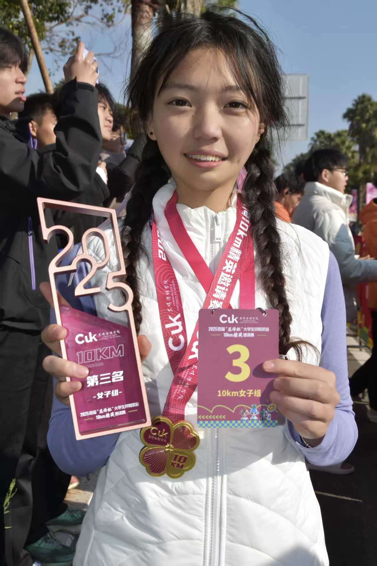 2025年12月20日,首届“昆传杯”大学生环阳宗海10km精英邀请赛在阳宗海风景区(施家咀)激情开跑,学校代表队表现出众,学子张丹丹斩获10km女子组第3名的优异成绩;黎慧文、蒋梦泽分别取得10km女子组第25名、男子组第21名的好成绩,其余参赛队员均安全完赛,他们用汗水诠释青春担当,为学校赢得荣誉。 这场由昆明传媒学院主办,共青团昆明传媒学院委员会、昆明传媒学院新活力体育产业学院承办,云南行知探索体育文旅产业有限公司执行承办的赛事,汇聚了省内外30余所高校的近2000名跑步精英。选手们以奔跑为媒,既践行“健康中国”战略,用脚步勾勒阳宗海的生态画卷,也让赛事成为校地融合、校际交流的活力桥梁。 best365英国在线体育官网代表队在学校大力支持之下,由体育与大健康学院党总支副书记李之琦,辅导员代表刘琲领衔带队,10名优异学子组成参赛队伍,带着学校的拼搏精神与青春朝气,投身于这场10km健康跑的竞技之中。 比赛当日,阳宗海畔寒风微拂,来自各大高校的选手们已集结完毕,蓄势待发。随着发令枪响,学校学子迅速进入状态,步伐坚定、节奏稳健,从起点的蓄力冲刺,到中途的体能拉锯,再到终点前的全力冲刺,他们直面赛程中的亚高原考验,用紧攥的双拳、坚毅的眼神,生动诠释了“永不言弃”的竞技精神与来自省内外高校的精英选手同场竞技。 最终,张丹丹同学凭借出色的发挥,成功斩获10km女子组第3名的优异成绩;黎慧文、蒋梦泽分别取得10km女子组第25名、男子组第21名的好成绩,其余参赛同学均顺利安全完赛。每一位队员的奋力拼搏与坚持不懈,都为学校增添了光彩,充分彰显了城科学子的青春风采与拼搏精神。 (李之琦 刘琲/指导老师 张丹丹/文 昆明传媒学院 /图 传媒中心熊素平/编辑)