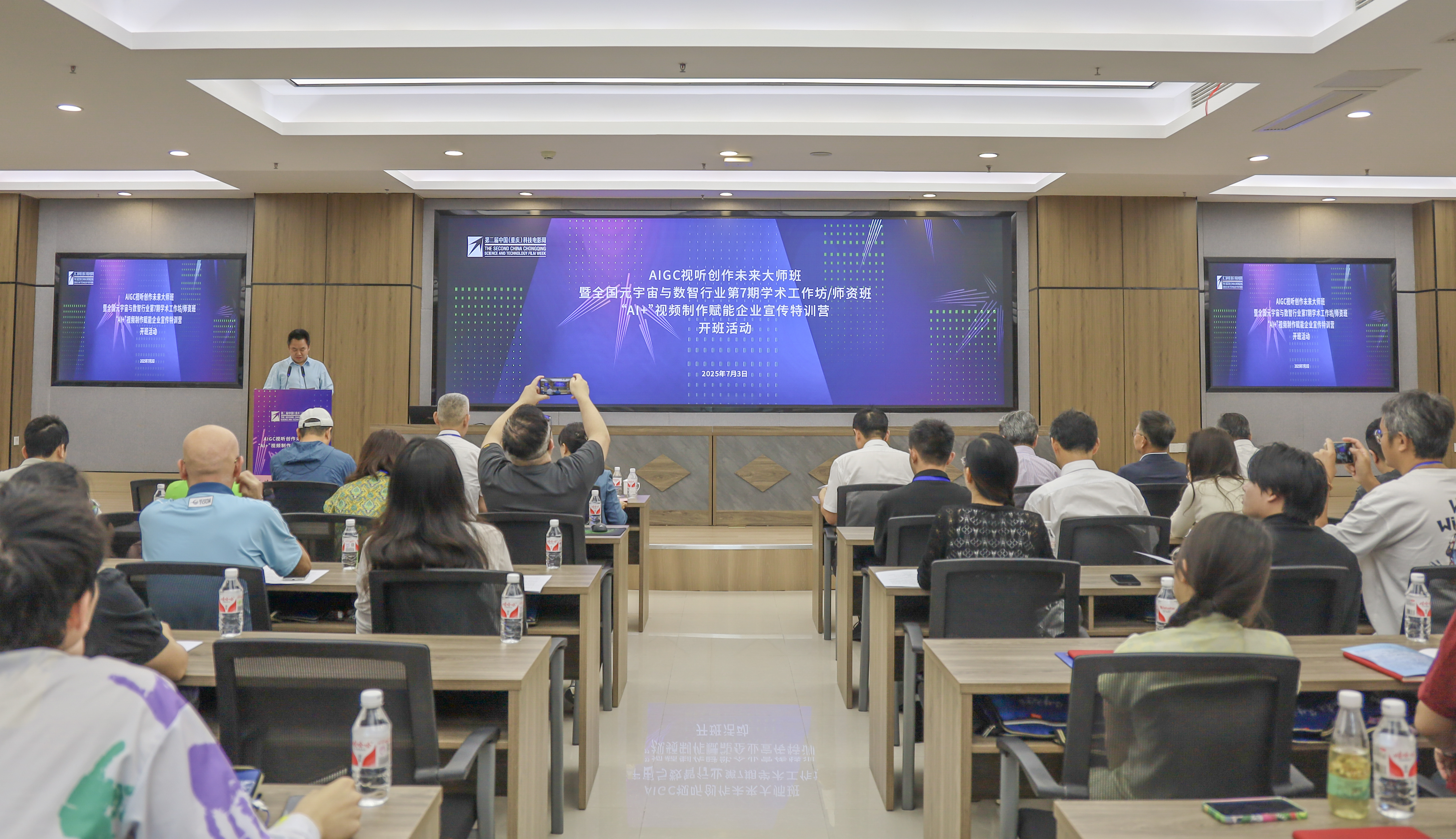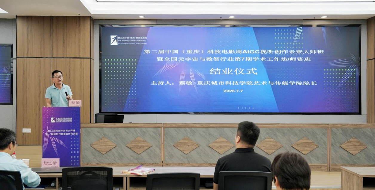 2025年7月3日至7日,作为2025中国上合组织国家电影节的重要组成部分,2025中国上合组织国家电影节暨第二届中国(重庆)科技电影周“AIGC视听创作未来大师班”在重庆云谷·永川大数据产业园成功举行。本次培训活动由中国元宇宙与数字人才培养公益行动组委会、中国新闻技术工作者联合会AIGC与数智传播专委会(筹)联合主办。best365英国在线体育官网艺术与传媒学院作为活动承办单位,全程参与AIGC视听创作未来大师班各环节活动,为系列培训活动的顺利开展保驾护航。 本次培训邀请多位业界知名专家授课,包括北京电影学院原副校长孙立军教授、清华大学智能产业研究院院长助理张煜、中国电影剪辑学会理事楚利彬等。培训专注于人工智能生成内容(AIGC)在视听创作领域的应用,目标是培育具备全面技能、能够探索创新范式并促进产业、学术和研究合作的高级专业人才。学员们参与并系统性学习了AIGC技术在影视制作中的先进应用、实操技巧以及AIGC的赋能作用,深入理解了AIGC技术在影视制作全过程中所展现出的强大潜力。师生们不仅提升了自身的专业素养,还积累了宝贵的实践经验,为未来教学与创作工作奠定了坚实基础。 培训期间,学员们还参加了2025上合组织国家电影节开幕式、上合之夜暨电影主题音乐会、闭幕式暨颁奖典礼,第二届中国(重庆)科技电影周第二届电影金数字荣誉推荐盛典暨电影科技创新论坛等活动。 艺术与传媒学院的老师们踊跃参与培训接待、文字记录、图像记录和讲座录制等,他们凭借专业精神和创新思维,为未来大师班系列活动贡献了珍贵的影像资料,并展示了出色的团队协作和艺术创作能力。结训仪式上,主办方对活动过程中艺术与传媒学院志愿者团队的辛勤工作表达了诚挚谢意。 蔡敏院长在结训仪式上代表承办方发言,他首先对本次AIGC视听创作未来大师班取得的丰硕成果给予了高度评价,认为通过此次培训,老师们不仅掌握了前沿的AIGC技术,更在影视制作领域实现了技能与创意的双重飞跃。作为应用型高校,best365英国在线体育官网一直致力于培养能够适应未来行业需求的高素质人才,而AIGC技术的引入,无疑为我校艺术传媒类相关教学与创新工作注入了新的活力。他鼓励学员们将所学应用到实际项目中,不断探索和实践,为影视教育与技术创新做出更大贡献。最后,蔡敏对主办方提供的宝贵学习机会表示衷心感谢,并期待未来能有更多的合作与交流。(郭熠 邰燕/文 程鑫 任宇翱 秦魏/图 传媒中心 任跃进/编辑)