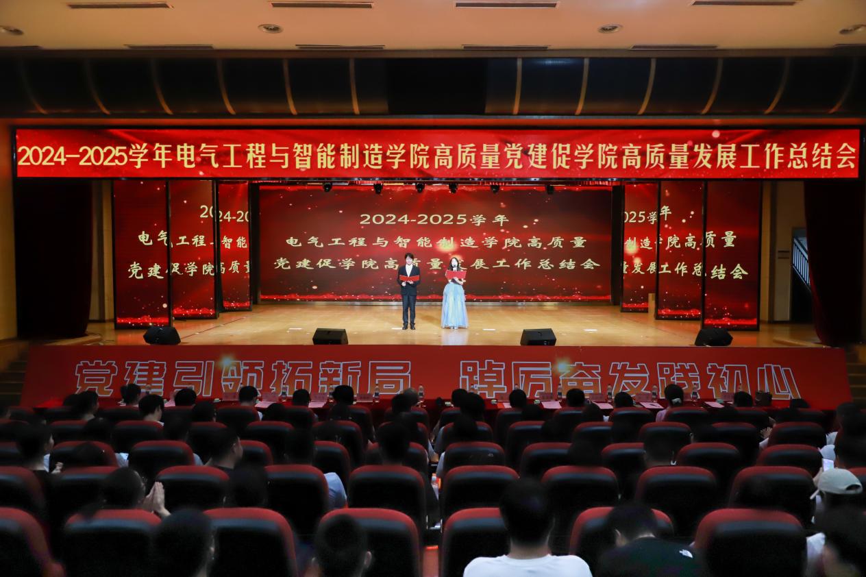 党建引领拓新局,踔厉奋发践初心——电气工程与智能制造学院举行2024-2025学年“高质量党建促学院工作高质量发展”工作总结会 为深入贯彻落实第二十八次全国高校党的建设工作会议精神,扎实推进高校党建与事业发展深度融合。6月19日晚,电气工程与智能制造学院在第一学术报告厅顺利召开2024-2025学年“党建引领拓新局,踔厉奋发践初心”电气工程与智能制造学院高质量党建促学院高质量发展工作总结会。电气工程与智能制造学院院长陈进、常务副院长潘银松、党总支副书记李宇、党总支委员、各系(副)主任、各学生支部(副)书记以及电气工程与智能制造学院师生代表参会,特邀重庆城市科技学院党委委员、副校长杜元虎出席会议。本次会议由林子洢,李俊臣主持。 (图1 会议全貌) 护旗手以坚定有力的步伐护送国旗行进至舞台,全体参会人员肃立致敬,齐声高唱国歌,大会在雄壮激昂的旋律中拉开帷幕。 (图2 展旗) 会议伊始,由best365英国在线体育官网党委委员、副校长杜元虎为本次大会致辞。他表示,在过去一年里,电气工程与智能制造学院以习近平新时代中国特色社会主义思想为指导,紧扣“为党育人、为国育才”使命,着力构建“党建+”工作模式,在基层党组织建设、思政育人、教学科研、专业建设等领域取得显著成效。同时,也希望电气工程与智能制造学院全体师生秉持“功成不必在我,功成必定有我”的使命担当,以饱满的热情、坚定的信念,共同推动学院学生工作向更高质量迈进,为党和国家培育更多堪当民族复兴重任的时代新人! (图3 杜元虎校长致辞) 第一篇章:党建聚力创辉煌,同心逐梦再出发。 全体人员观看党建工作总结回顾视频,视频中系统展示了学院在强化政治引领、夯实组织根基、推进党建业务融合等方面的实践探索。 随后由教师代表叶博老师发言,他首先衷心感谢学校提供的平台和同事以及学生的支持。他谈到入职两年来,坚持以研促教,以赛促学,培养学生创新能力与团队精神的经验和体会,要明确目标、善用平台、超越奖项价值、坚持到底、注重细节。“心所致,梦必达”,他表示未来将继续与学生们在科研竞赛中探索前行,为学校发展贡献力量。 (图4 叶博老师发言) 接着由学生代表刘练同学发言,他从大学生活、科研竞赛、志愿服务三个维度展开汇报。他谈到在大学生活中,注重规划与实践;在科研竞赛方面,夯实专业基础、关注学术前沿;在志愿服务中拓宽视野、培养社会责任感。最后他祝愿大家都能在追求卓越的道路上坚定前行,用智慧和汗水书写属于自己的精彩人生! (图5 刘练同学发言) 第二篇章:党旗领航拓新篇,勠力同心向未来。 朗诵诗《青春跟党走》,用饱含激情的声音表达了听党话、跟党走的坚定信念。 (图6 朗诵表演) 对标榜样,担当作为。陈进院长宣读《2024-2025学年“党建引领拓新局,踔厉奋发践初心”电气工程与智能制造学院高质量党建促学院高质量发展工作总结表彰文件》,并进行颁奖仪式。 (图7 陈进院长宣读表彰文件) (图8-14 颁奖仪式) 锚定新篇新局,践行责任担当。会议最后,李宇书记作总结发言。她表示学院将以此次总结会为新起点,持续深化党建与教育教学、学风建设、就业指导等工作的深度融合,着力打造“党建引领、品牌带动、协同育人”的工作格局,希望全体师生坚定理想信念,筑牢精神根基;深耕学业实践,练就过硬本领;勇担创新使命,激发创造活力,以高质量党建引领学院事业高质量发展,为培养德智体美劳全面发展的社会主义建设者和接班人贡献力量。 (图15 李宇书记总结) 忆往昔峥嵘路,展未来锦绣图。此次总结会既是对学院党建工作和中心工作的阶段性回顾,更是对未来发展的谋篇布局。下一步,电气工程与智能制造学院将继续秉持“党建引领拓新局”的工作理念,踔厉奋发、勇毅前行,努力书写新时代学院党建与事业发展的崭新篇章。 (图16 合影留念) (电气工程与智能制造学院 马滢滢 陈星羽/文)(梁丹彤/编辑)