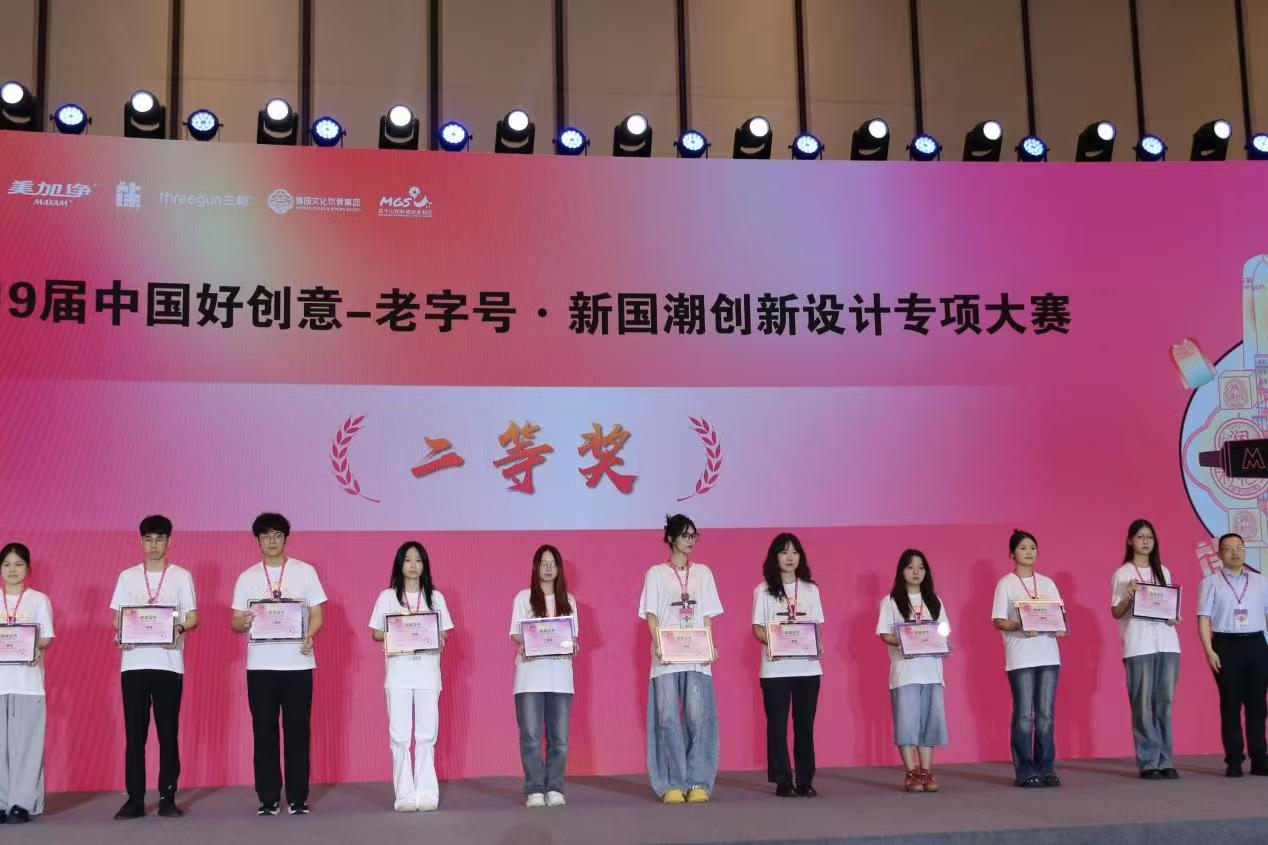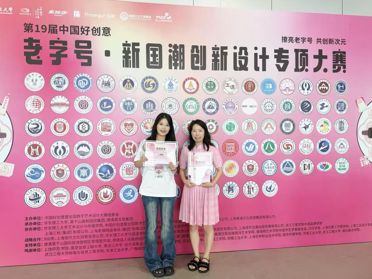 7月9日—11日,第19届“中国好创意暨全国数字艺术设计大赛——老字号·新国潮”专项赛在浙江省德清县莫干山火热举行,比赛分24小时训练营、现场决赛答辩和颁奖典礼三个部分。经过与全国百余所高校263支入围团队同场竞技,我校艺术与传媒学院视觉传达设计专业学生邓力瑗斩获国赛二等奖,指导老师龚洁获评“优秀指导老师”称号。 参赛师生及获奖证书 第19届中国好创意-老字号·新国潮创新设计专项赛24H训练营,由华东理工大学艺术设计与传媒学院教授倪海郡老师主持。他结合自身在老字号品牌焕新领域的丰富经验,为学员们描绘了新时代背景下老字号创新发展的广阔图景,点燃了在场每一位青年设计师的创作激情与使命担当。 新国潮创新设计专项赛24小时训练营开营仪式 24小时训练营现场(邓力瑗) 在训练营导师们专业严谨的指导下,来自世界各地百余所高校的选手们在视觉表现和设计美感上实现飞跃,在文化内涵的深度挖掘上获得提升,在市场需求以及创意维度的精准把握上取得突破,展现青年学子的学习力和创新潜力。本次训练营不仅是一次设计技能的飞跃式提升,更是一次深刻的文化寻根之旅,激发了选手们对中华传统文化传承创新的责任感。 邓力瑗答辩现场 决赛答辩现场,邓力瑗与各参赛团队同台展示。其作品《美加净上海礼盒包装设计》,巧妙融合了老字号品牌文化底蕴与年轻化视觉语言。面对评委对设计创意、文化内涵及市场可行性的多维考核,她沉着应对,以清晰的逻辑和自信的陈述,层层突破初评、复评与终评答辩,赢得评委高度认可,斩获国赛二等奖。 现场领奖照片 在颁奖典礼上,邓力瑗同学作为获奖选手登台领奖,龚洁作为教师代表,上台接受“优秀指导教师”表彰,师生同台,共享荣耀时刻。本次获奖不仅是对邓力瑗同学专业能力的肯定,更是我校“以赛促教、产教融合”教学成果的生动体现。未来,艺术与传媒学院师生将继续在传承、弘扬中华文化的道路上砥砺前行,展现青春创意力量,以设计点亮新国潮!(传媒中心 徐安妮/编辑)
