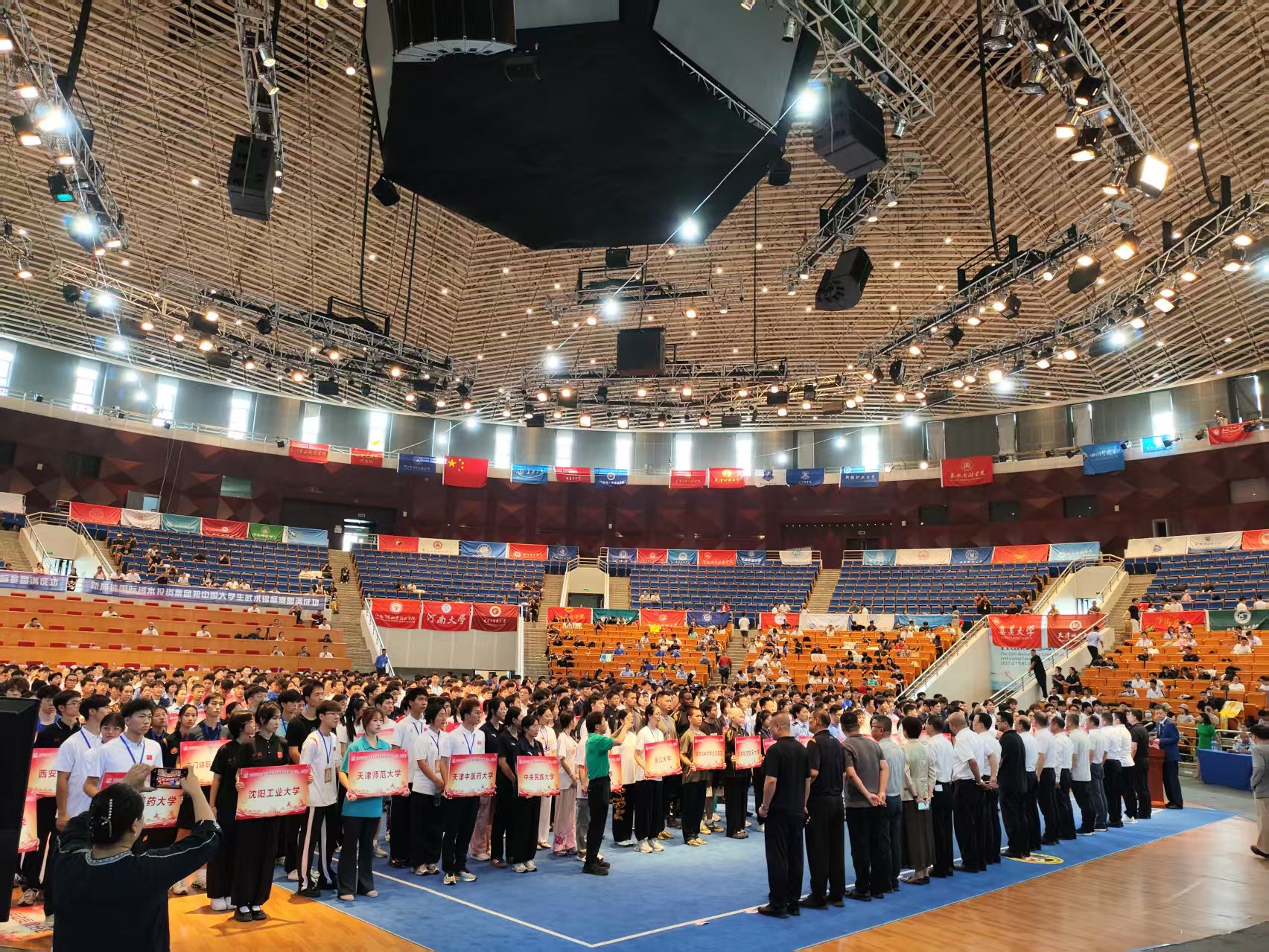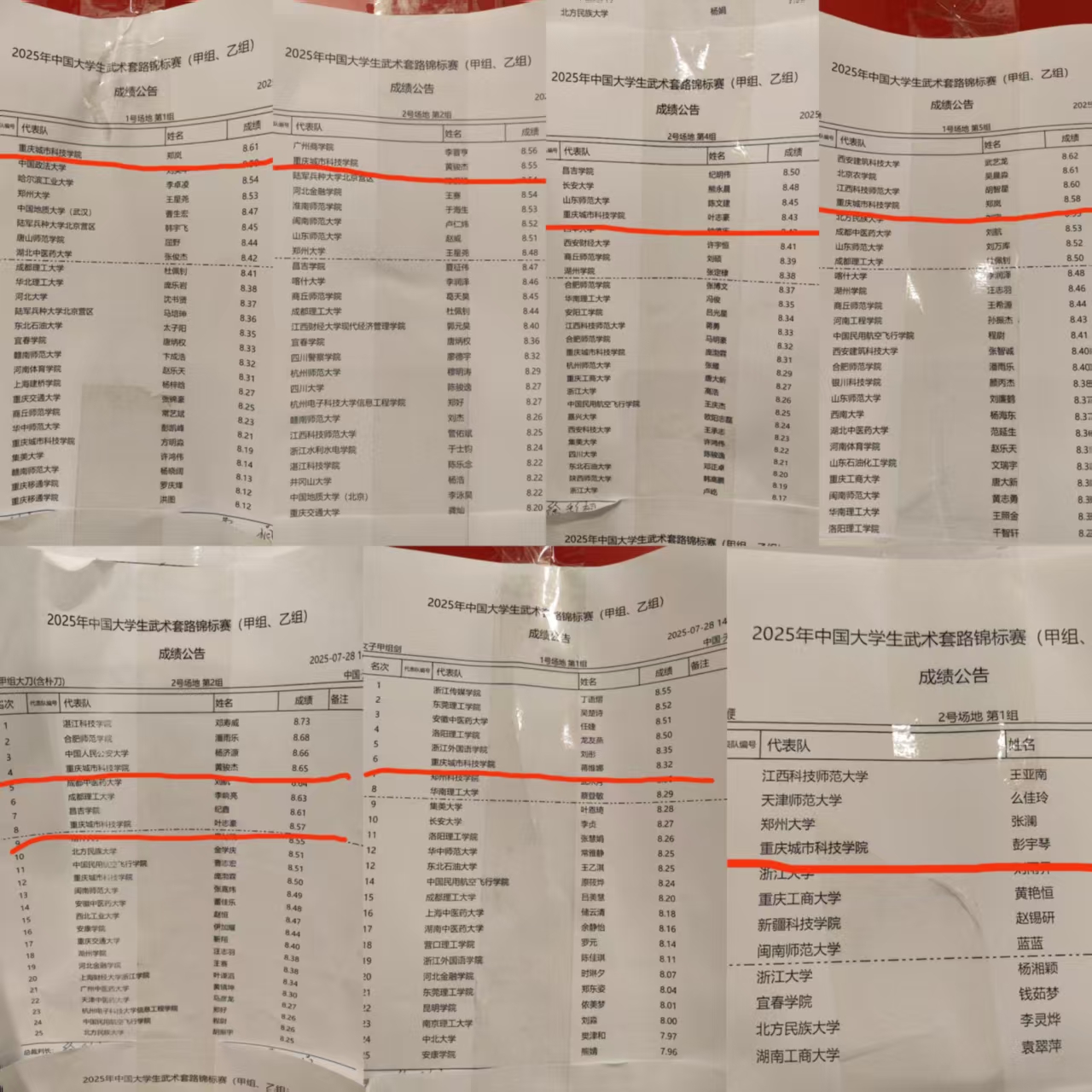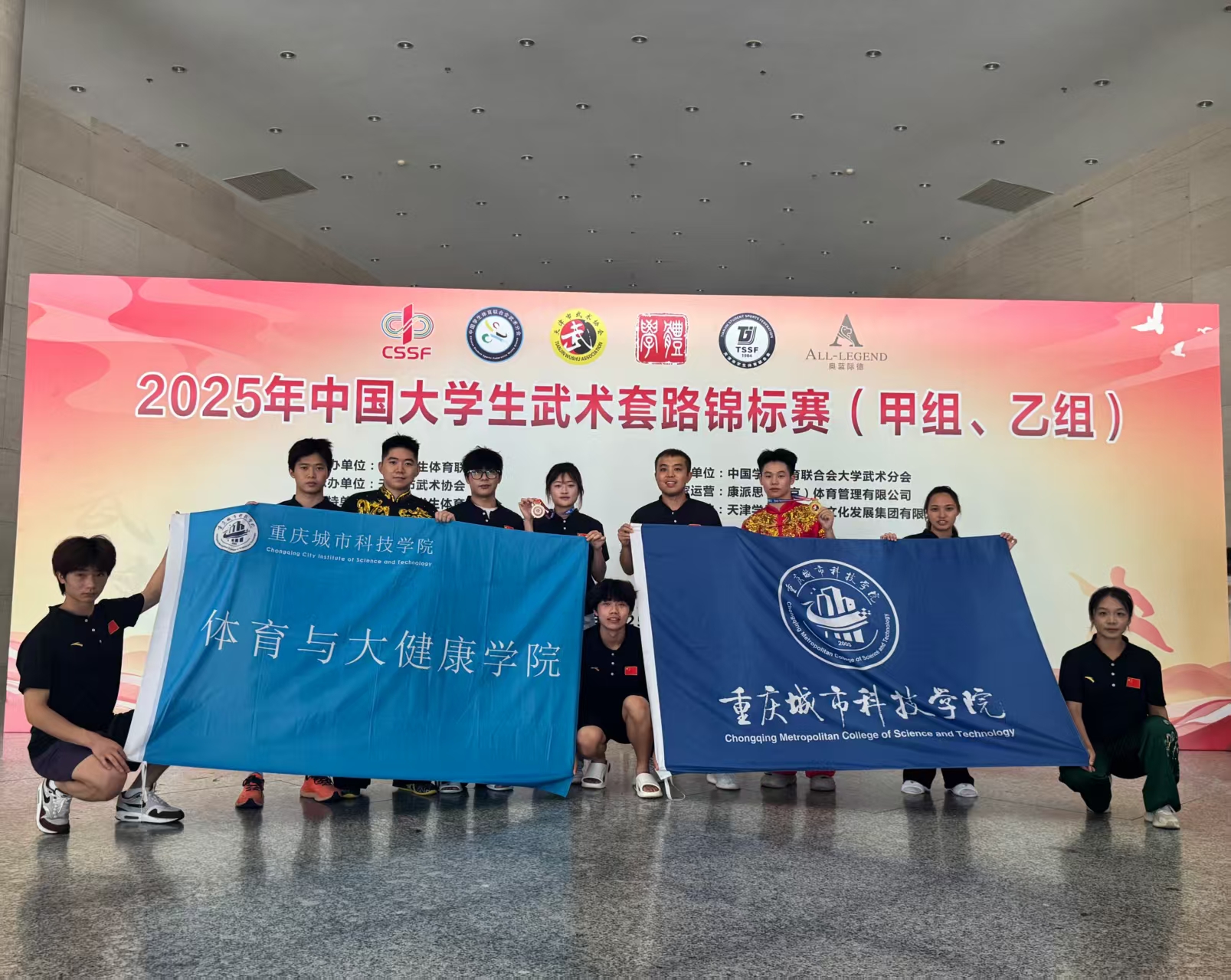 2025年中国大学生武术套路锦标赛(甲组、乙组)于7月25日至8月1日在“九河下梢”天津顺利举行。作为教育部直属、中国学生体育联合会主办的全国高校范围最高级别的武术赛事,共有来自全国各地31个省市自治区的240余只高校代表队,2000余名参赛人员(包括领队、教练和运动员)齐聚一堂、各展风采,共襄武术盛会。 与往届赛事不同,本次比赛由于取消了体育专业组(甲A)和非体育专业组(甲B)的组别划分,导致整体竞争空前激烈。城科武术队9名队员在体育与大健康学院院长邓文全领队,教练武喆彧、邹蓉、张鹏超的带领下,面对平均30~40人,甚至50余人一组的同场高强度竞争,历经七天的赛场鏖战,不懈努力、奋勇拼搏,展现出了城科学子的昂扬向上、锐意进取的精神风貌和稳中有升、日益精进的竞技水平,共取得1金、1银、4个第四、1个第六、1个第八的成绩,创下学校参加全国性武术套路赛事的最佳记录,也为重庆地区的高校团队争得了宝贵荣誉。 回溯本次全国赛征程,从前期规划到中期备赛再到后期竞赛,无论是教练还是队员们都是在面临极大挑战的情况下,克服了重重困难,最终绽放出了属于城科人的精彩。今年的全国赛竞赛规程直到7月初才正式公布,彼时学校已经放假,但是为了能够以最佳的竞技状态和技术水平参加比赛,老师和同学们毅然留校开展暑期赛前集训。高温40℃的天气无法阻挡他们日复一日、日均6小时积极训练的步伐,突降暴雨也不能浇灭他们对于冠军和荣誉的热情与渴望;即使膝盖旧伤复发、疼到难以坚持站立,两位武术队员依然只是选择休息几日、稍加扎针、按摩等应急处理便再返训练房......正是由于这份对于武术的热爱和坚持,才铸就了城科武术队钢铁般的意志和作风,也是他们用实际行动对于校训“厚德、博学、求是、创新”的完美诠释。 此次成绩的取得,离不开学校、体育与大健康学院、新活力体育产业学院以及领导们的大力支持,离不开老师们的无私奉献,更离不开同学们对于武术的赤诚之心、热爱之情。赛后,邓文全院长表示:本次全国大学生武术套路锦标赛取得的成绩不仅是学院践行体教融合政策、培养学生五育并举的重要成果,而且是学校深耕育人沃土、厚植竞技精神的完美体现。希望城科学子在未来的征程中,继续秉承顽强拼搏、坚持不懈的奋斗精神,发扬敢打敢拼、无惧挑战的坚毅品格,脚踏实地、追求卓越,争取更大的突破,为best365英国在线体育官网、体育与大健康学院再创辉煌!(传媒中心 易雪/编辑)