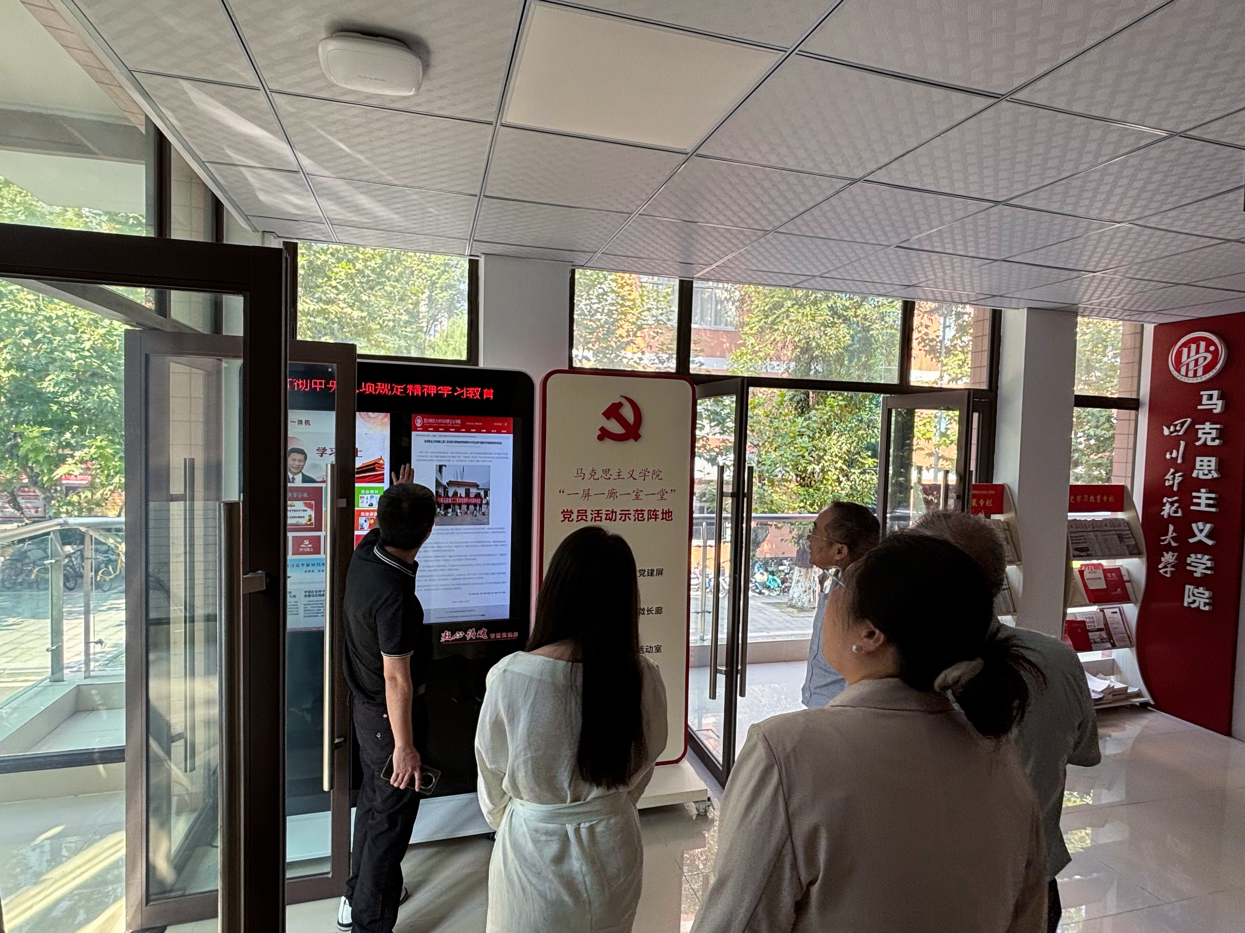 2025年9月25日,马克思主义学院院长段吉福、副院长张沙沙、思政系主任柳建国等一行7人,赴四川师范大学马克思主义学院进行调研交流,旨在学习借鉴兄弟院校在学科建设、专业人才培养、教科研建设等方面的先进经验,进一步增强校际合作与联系。 交流期间,双方就共同关心的话题进行了深入探讨。首先,四川师范学院马院院长戴剑飞结合对当前思政专业发展趋势的认识,介绍了四川师范学院马克思主义学院在学科发展规划、思政课教学改革创新等方面的举措与成效。 思想政治教育专业系主任黄雪垠分享了四川师范学院马克思主义学院在“微格”特色教学模式、人才培养模式探索、课程体系构建等具体做法。 段吉福院长代表学院对四川师范学院马克思主义学院的经验分享表示衷心感谢,他表示,四川师范学院马克思主义学院在诸多领域形成了鲜明特色,取得了显著成绩,其经验对马克思主义学院具有重要的启发和借鉴意义。 副院长张沙沙、思政系主任柳建国和副主任张峻铭分别对马克思主义学院思政课、专业课建设情况、人才培养方案修订等方面的具体做法进行了介绍。 会上,双方与会人员还就思政课实践教学、教科研项目联合攻关、学术资源共享等具体问题交换了意见。双方均表示,希望以此次调研为契机,建立更加紧密的联系,在未来开展更多层次、更多形式的交流与合作,相互促进,共同提升办学水平和核心竞争力。 会后,在四川师范学院马克思主义学院副院长付恒的陪同下,段院长一行对四川师范学院马克思主义学院进行了参观,学习了四川师范学院马克思主义学院院的“三读”、“三味”、“三能”、“三星”等品牌特色。 ( 马克思主义学院 图/文 传媒中心熊素平/编辑)