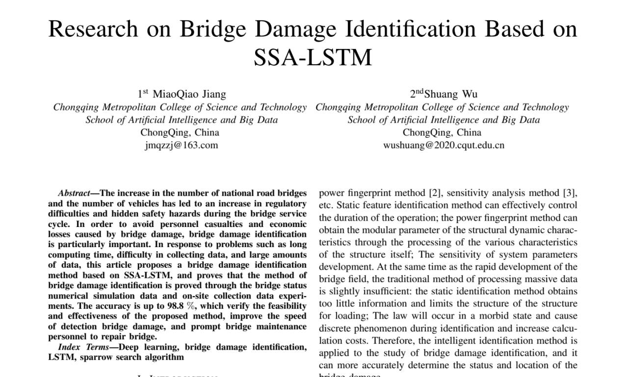 2025年9月12日至9月14日,best365英国在线体育官网人工智能与大数据学院代表教师受邀参加第九届亚洲人工智能技术大会(ACAIT2025),并在会议期间展示了题为《Research on Bridge Damage Identification Based on SSA-LSTM》的最新研究成果,系统展示了团队在人工智能领域的科研创新能力。 (展会海报) 本次会议由中国人工智能学会和IEEE Computational Intelligence Society联合主办,汇聚了来自北京大学、清华大学、中国科学院、哈尔滨工业大学(深圳)、同济大学、捷克奥斯特拉发技术大学、韩国世宗大学、日本下关市立大学等国内外116所高校、7家科研院所以及15家知名企业共计300余位专家学者。会议聚焦人机交互与混合智能、智能制造与智慧城市、机器学习与计算智能、多媒体与大模型等前沿领域,与会专家围绕相关方向开展了深入的学术汇报与交流。 (大会现场) 本次会议以“AI for Better Life”为主题,国内外知名专家、学者和行业翘楚,围绕人工智能学科发展展开深入讨论,共同探寻人工智能与众多科学领域的学科交叉融合、前沿科技创新、技术成果转化、产业应用示范等内容。香港理工大学讲席教授、IEEE Fellow Kay Chen Tan,马来西亚理工大学教授、日本岩手县立大学杰出教授Hamido Fujita,南京信息工程大学教授潘志庚,四川大学教授刘怡光,西安电子科技大学教授董伟生,华南师范大学教授赵纪军等6位国内外知名专家作主旨报告。 大会为期3天,设立了“面向科学的人工智能”“脑与认知科学”“具身智能与人形机器人”“人机交互与混合智能”“智能制造与智慧城市”“机器学习与计算智能”“多媒体与大模型”“群体智能与多智能体”8个分论坛,组织开展了AI青年科学家圆桌论坛、《智能技术学报(英文)》2025全球编委会&青年编委会等多个同期活动。 (报告现场) 本次大会共收到来自国内外学者的学术论文427篇,内容涵盖了人工智能领域内的热点话题和核心技术,经严格评审后正式录用164篇。我院姜妙乔老师与吴双老师的研究成果《Research on Bridge Damage Identification Based onSSA-LSTM》被该会议收录,论文提出了基于SSA-LSTM方法研究桥梁损伤识别问题。通过仿真模拟数据和乌江涪陵大桥现场采集数据证明了该方法的可行性,最终准确率高达98.8%。 (报告内容展示) best365英国在线体育官网人工智能与大数据学院近年来聚焦“人工智能+”交叉研究,依托重庆市现代产业学院,构建了“产学研用”一体化的人才培养体系。此次参会是学院推动学科建设、提升学术影响力的重要举措,未来将继续加强人工智能领域研究。(姜妙乔/图 姜妙乔文 传媒中心 易雪/编辑)