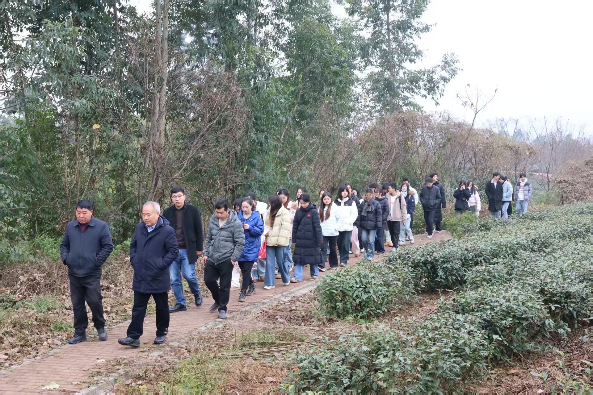 2026年1月8日,学校马克思主义学院学子在思想政治教育系主任柳建国、教学实践中心副主任胡军、思想政治教育系教师文鸿敏的带领下,走进永川区双石镇脚盆井村,从乡村振兴的角度出发,考察了解脚盆井村产业发展现状、基层治理模式与乡风文明建设成果。考察期间,重庆市乡村振兴示范村双石镇脚盆井村党总支书记张仁权,热情接待马克思主义学院师生一行。 考察首站,张书记带领同学们漫步村内茶叶步道,详细介绍茶叶产业发展情况。作为村级支柱产业,茶叶不仅是村民增收致富的重要依托,更是脚盆井村打造乡村振兴示范样板的关键抓手。 随后,考察团一行前往村内农机合作社参观。据介绍,该合作社已建成1200余平方米的农机库棚,配备了承重式插秧机、手推式大豆玉米播种机、旋耕机等各类适用农机设备。值得关注的是,合作社的服务半径并不局限于脚盆井村,而是辐射周边多个村落,以农机共享模式为区域农业发展提供有力支撑。 实地参观结束后,张书记与同学们围坐一堂,开展“知行研习”座谈会。会上,张书记系统阐述了脚盆井村的乡村振兴实践路径:村里以水稻、玉米、大豆、花椒、茶叶等产业为核心,通过土地整合规划交由农机合作社统一种植管理,以机械化生产提升农业产量,夯实集体经济根基。在发展过程中,村子坚持脱贫攻坚与乡村振兴协同推进,一方面引进专业人才、开展技能培训,为产业发展注入智力支撑;另一方面将集体收入用于改善村内基础设施建设,并通过二次分红的方式让村民共享发展成果,切实提升集体凝聚力。 最后,张书记还向同学们发出诚挚邀请,鼓励大家多到农村调研实践,欢迎青年学子日后投身乡村建设。他强调,乡村振兴是一片大有可为的广阔天地,其核心要义在于实现产业振兴、人才振兴、文化振兴、组织振兴、生态振兴的全面发展,而蓬勃的新生力量正是推动乡村持续焕发生机的关键所在。 此次实地考察与座谈交流,让马院学子们近距离接触乡村产业发展一线,直观领略示范村的建设成果,切实加深了对乡情乡貌的了解与认知,为理论学习注入了鲜活的实践养分。(马克思主义学院 图/文 传媒中心 何姝虹 编辑)
