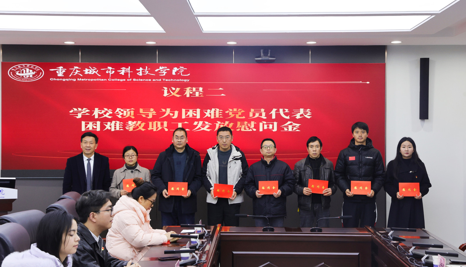 为深入学习贯彻习近平新时代中国特色社会主义思想,加强对学校困难党员、困难教职工的关怀,1月19日上午,学校在第一行政楼101会议室召开生活困难党员、困难教职工新春慰问座谈会。学校理事长刘学民,党委书记、政府督导专员王银峰,纪委书记、校长助理田妍妮,各分工会主席、困难党员代表以及全体受补助困难教职工参加会议。座谈会由学校党委组织部部长刘茜主持。 会议伊始,刘茜部长简要介绍了学校生活困难党员、困难教职工慰问工作的开展情况。 学校纪委书记、工会主席、校长助理 田妍妮为困难党员、困难教职工发放慰问金 学校党委书记、政府督导专员 王银峰为困难党员、困难教职工发放慰问金 学校理事长 刘学民为困难党员、困难教职工发放慰问金 随后,学校向困难党员代表表达了组织的关怀与慰问,并现场发放慰问金。 建筑管理学院困难党员代表罗姣发言 学生处困难教职工代表李欣蔓发言 与会代表纷纷对学校领导的关心表示感谢。他们在发言中表示,将始终牢记党恩,积极克服困难,珍惜现有条件,以更加饱满的热情为学校事业发展贡献力量。 刘学民理事长对本次座谈会作总结讲话 理事长结合自身亲身经历,为大家上了一堂生动的励志课。他勉励与会困难党员、困难教职工,要坚定信心,当前的困难只是暂时的,要发扬吃苦耐劳、坚韧不拔的精神,在磨砺中实现自我超越。他表示,学校始终用心用情做好关怀工作,切实把温暖送到需要帮助的教职工心上,起到“雪中送炭”的作用。他希望大家继续努力,共同推动学校各项事业向前发展。 本次座谈会在温暖而振奋的氛围中圆满结束。青年兴则国家兴,希望受慰问党员、教职工能铭记党的嘱托,感党恩、听党话、跟党走,坚定理想信念,脚踏实地、勇毅前行,在新时代的赶考路上交出合格答卷。(传媒中心 高晓兰/编辑)